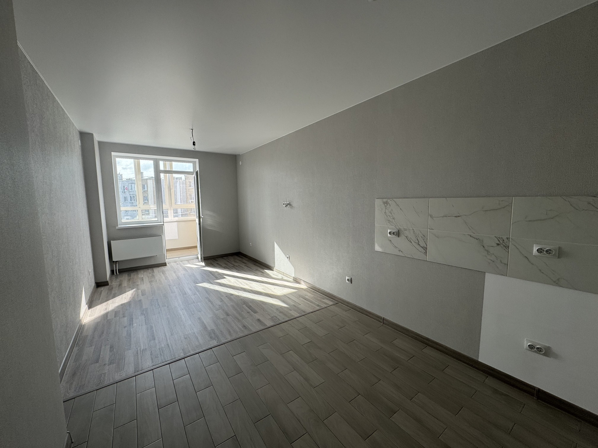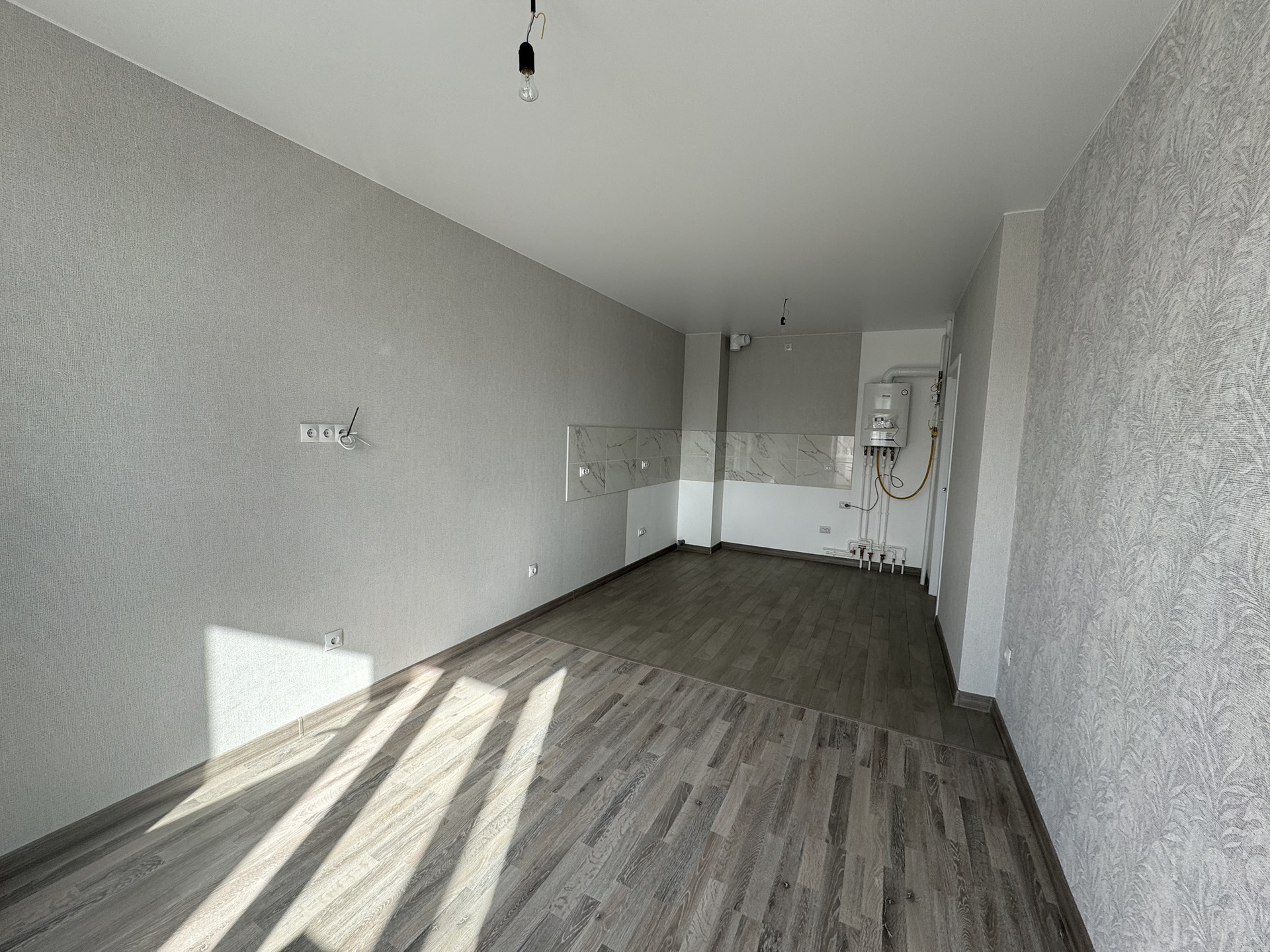ПОЛ: жилые комнаты - ламинат; кухонная зона - керамическая плитка;