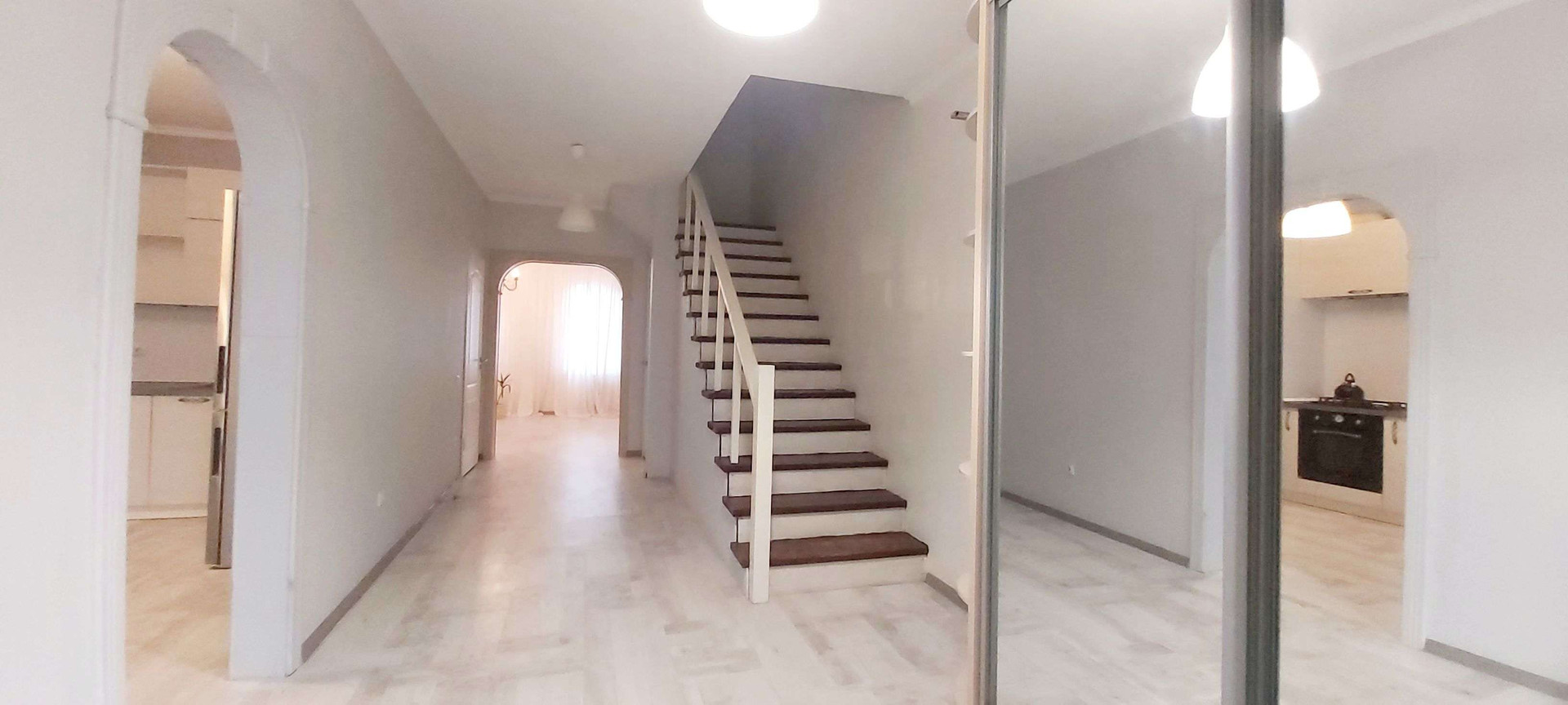 4изолированные комнаты, кухня 16м, два санузла, гардеробная, кладовка, большой холл.