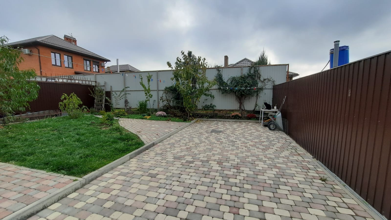 Кирпичный забор, Рольворота, калитка. Везде плитка, за исключением задней части двора, там бассейн, клумбы и зона отдыха. В доме был сделан дорогой ремонт и из дорогих материалов 2019 году.