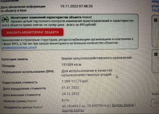 Продаю земельный участок , категория земель : земли сельскохозяйственного назначения , площадью 151589 м. кв., расположенный по адресу: Республика Крым, Ленинский район, Батальненское сельское поселение, лот 35, участок 447. Торг. |