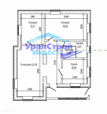Жилая площадь 56.4 м2