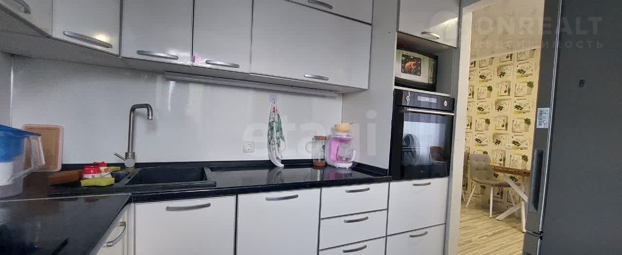 В современном стиле оформлена детская комната, есть гардеробная. Кухня просторная, оборудована современной мебелью и техникой, включая микроволновую печь.