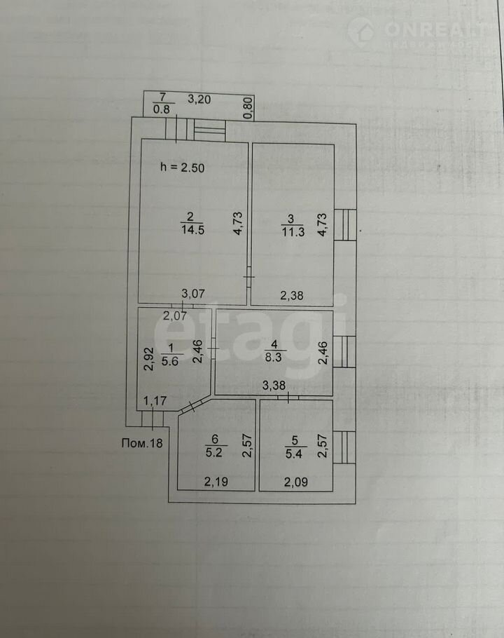 Общая площадь 50.3 м2