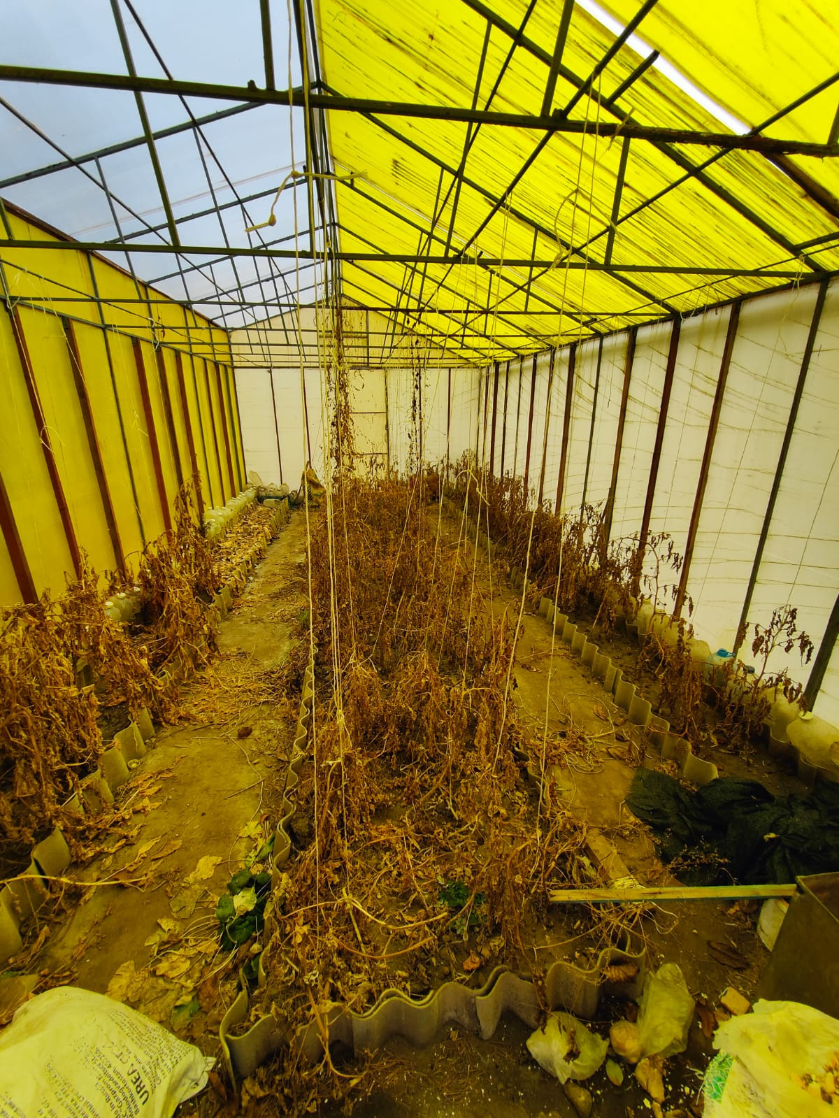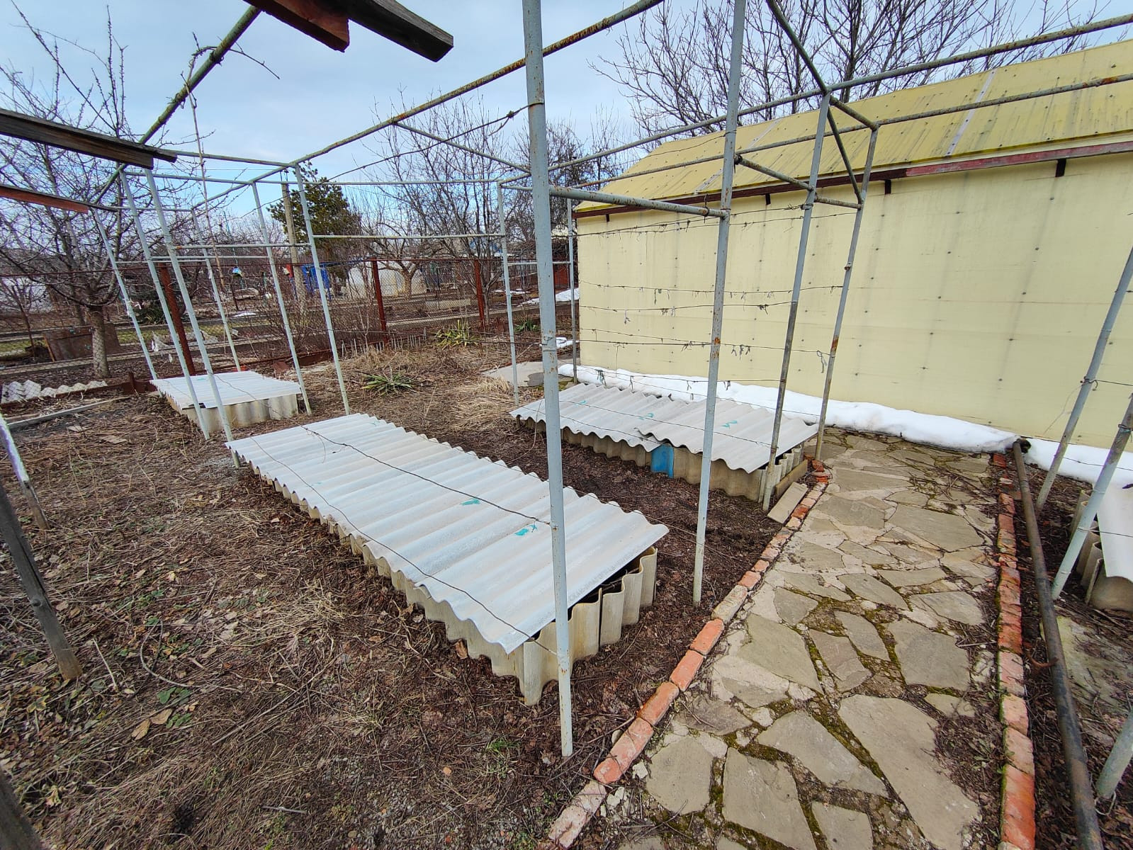 Большая теплица - более 70 квадратных метров, состоящая из двух частей - "огуречная" и "помидорная", снеговую нагрузку этой зимы не заметила, грядки в теплице - "теплые".