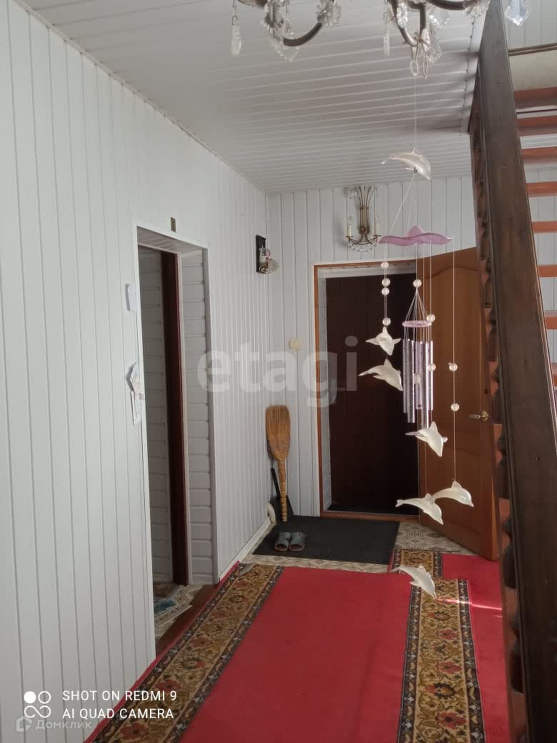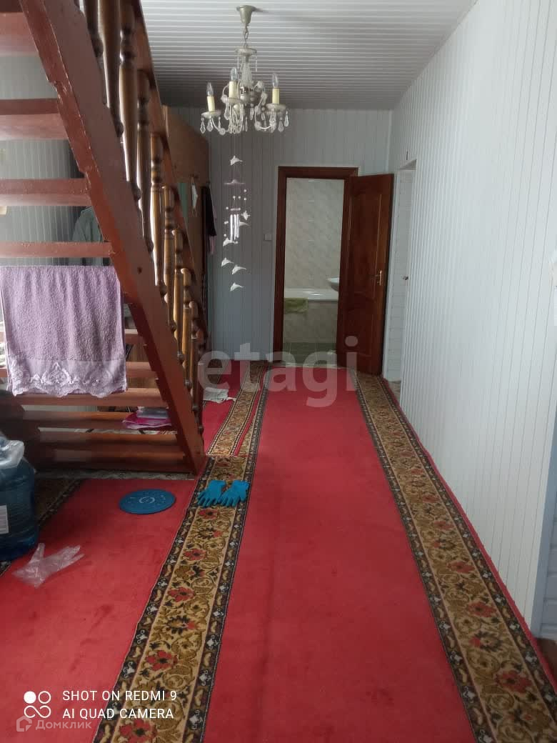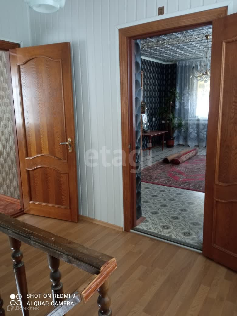 В доме выполнен качественный ремонт. На первом этаже расположена столовая и санузел. За стеной гараж с подвалом по всей площади. На втором этаже 4 комнаты(спальни, прихожая).