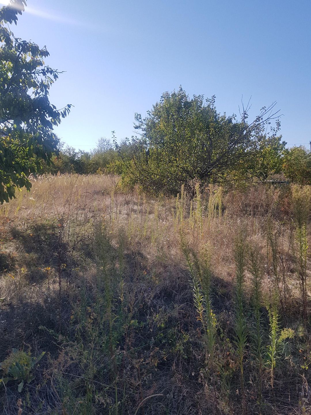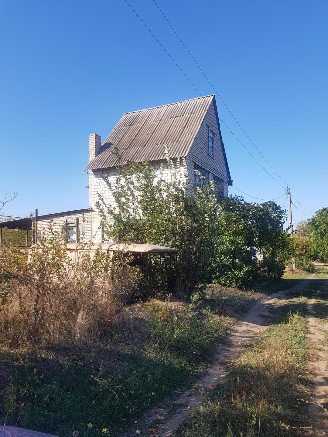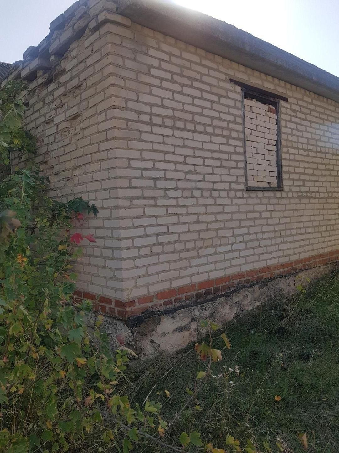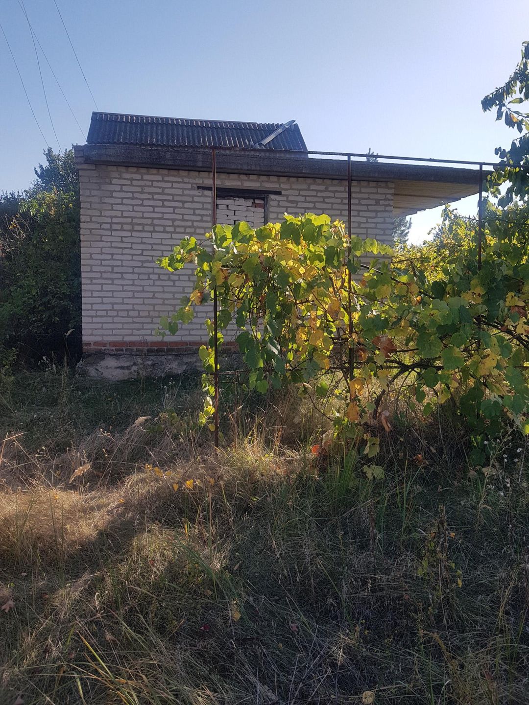На участке расположен недостроенный дом(стены-кирпич,крыша-плиты), стройматериалы,будка для хоз.инвентаря,плодовые деревья.