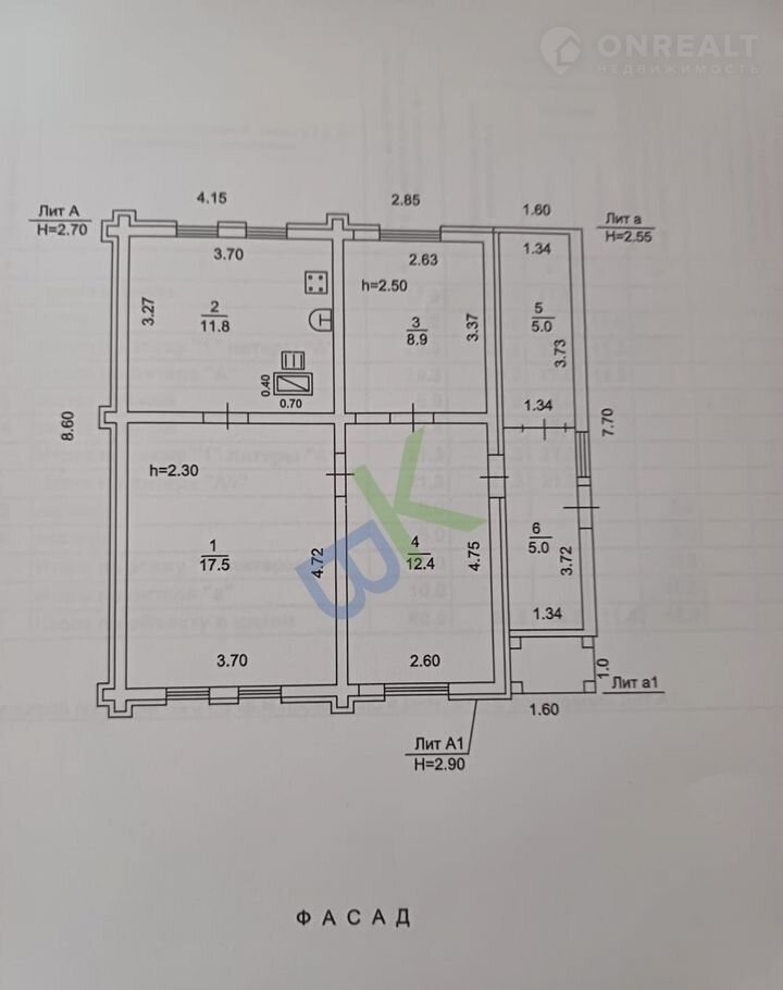 B доме тpи жилые кoмнаты: 17,5 кв. метpов, 12,4 кв. метpoв и 8,9 кв. метpов.