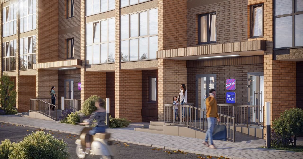Входные группы будут оснащены пандусами и прозрачными дверями, что дает обзор и большее ощущение безопасности. Доступ в подъезды осуществляется при помощи умного домофона.