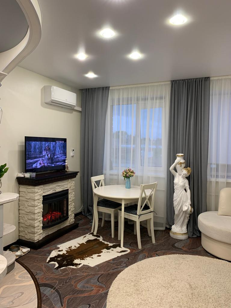 Остается: кондиционер, кухонный гарнитур, мебель, гардероб с освещением.
