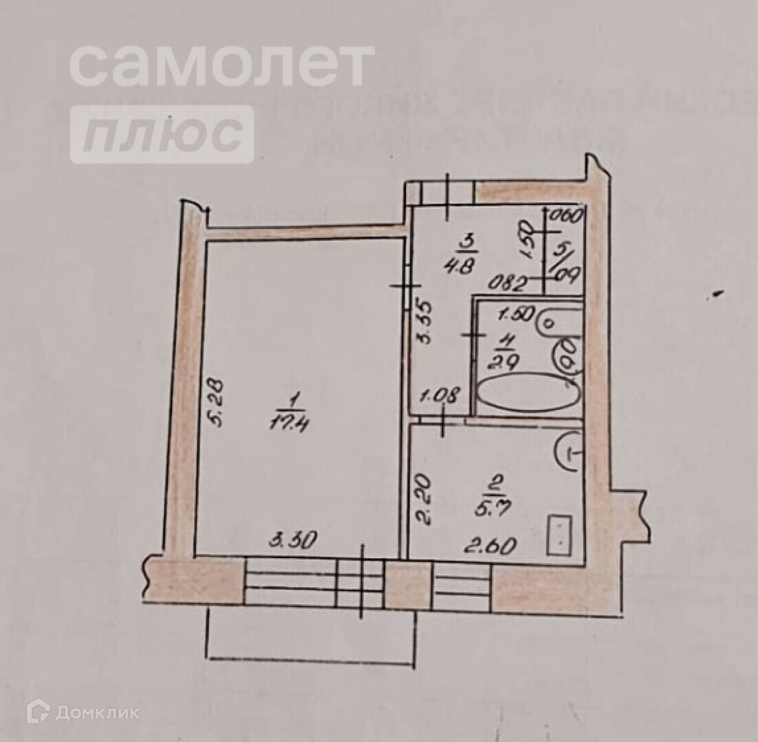 Жилая площадь 17.4 м2