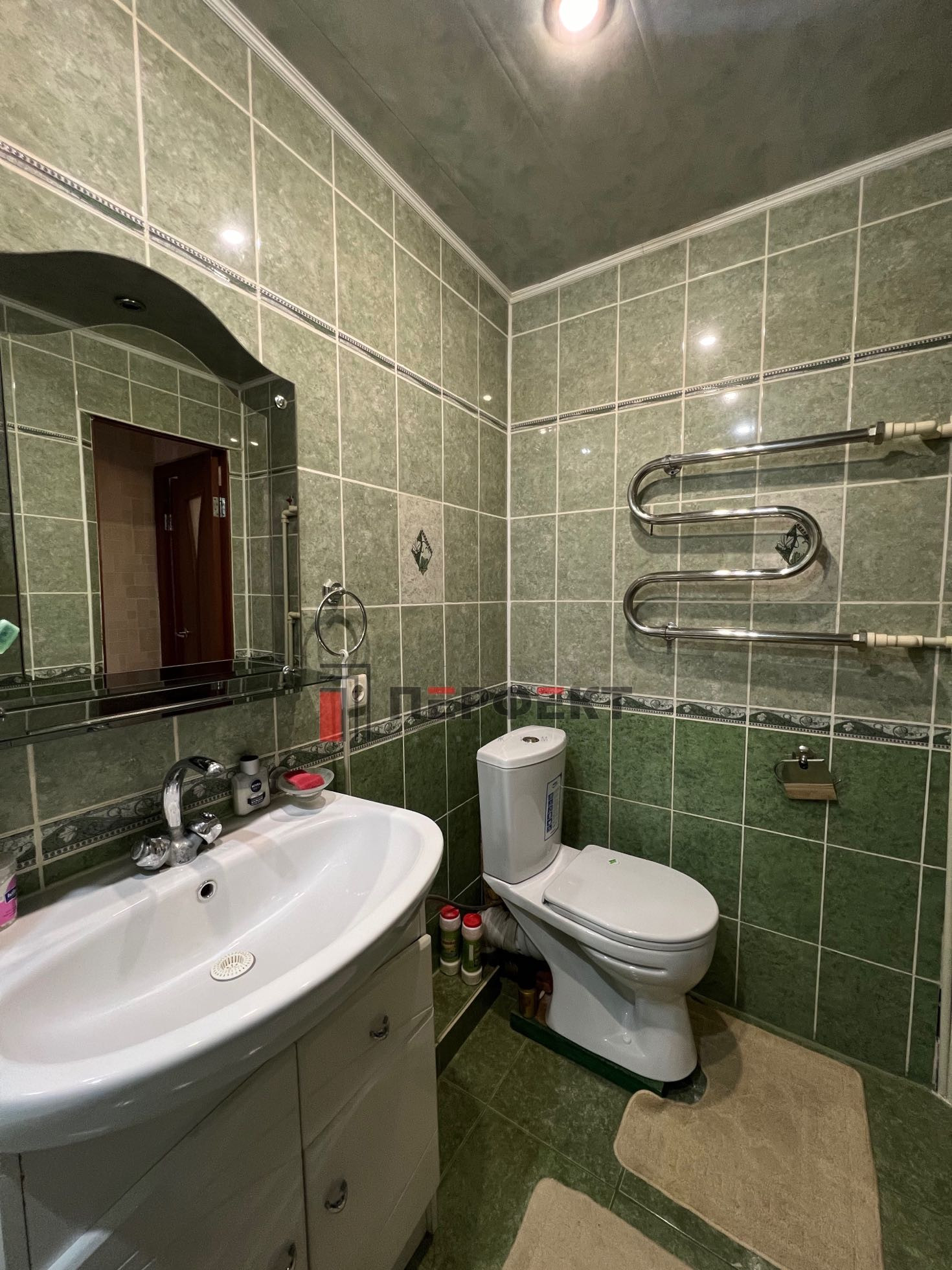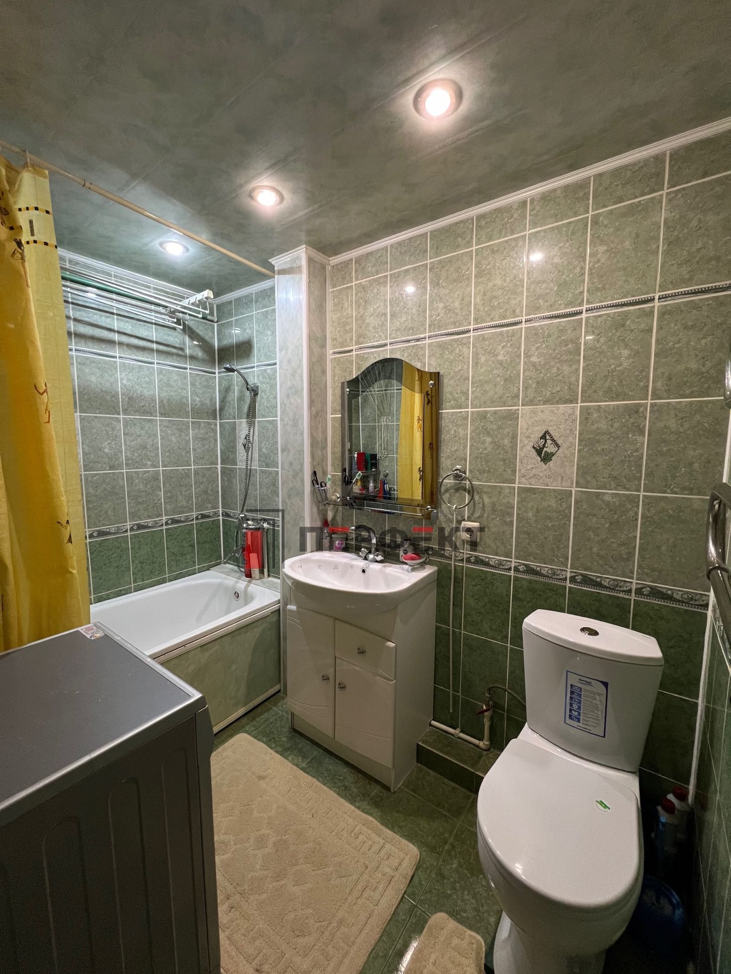 ✅Просторный совмещенный санузел, пол и стены кафель.