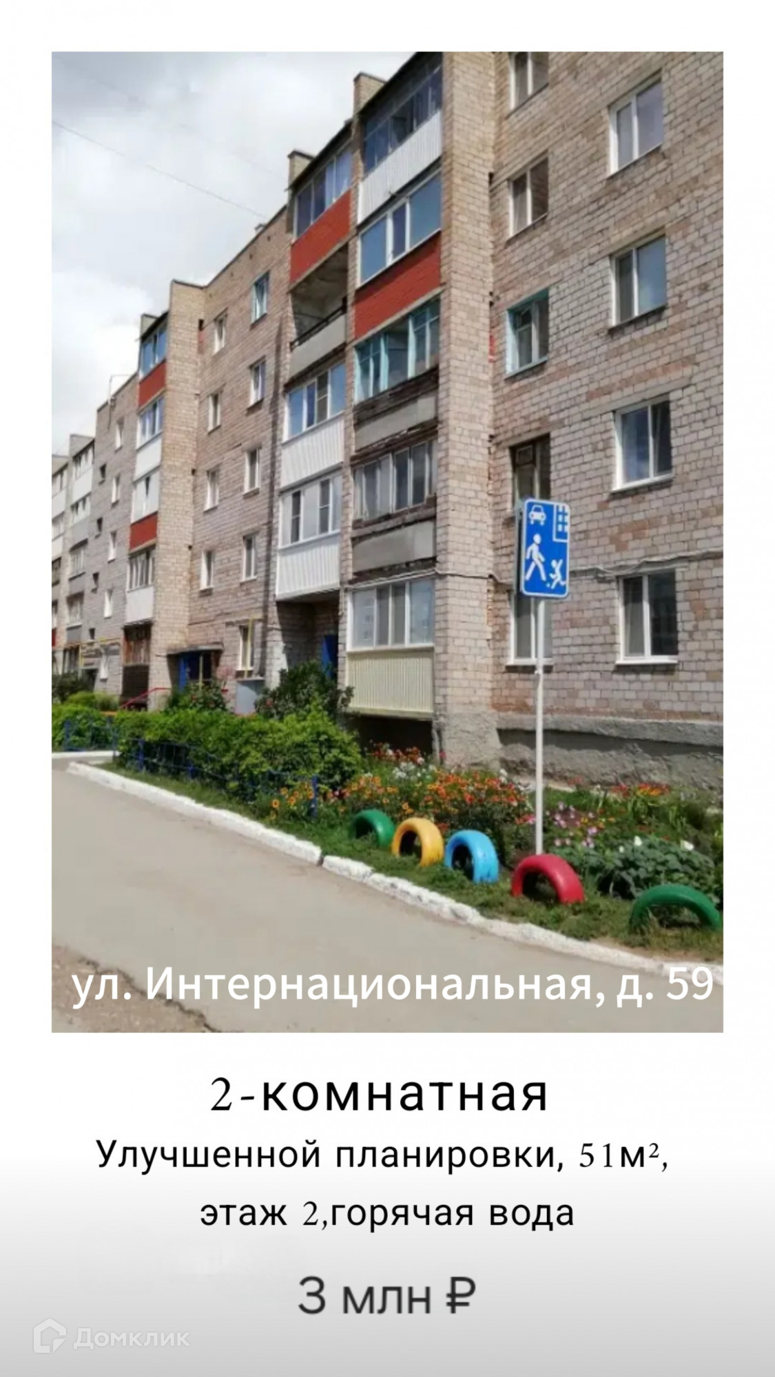 2-комнатная квартира, 50.9 м2, этаж 2 / 5, на продажу в Белебее, Интернациональная улица, 59