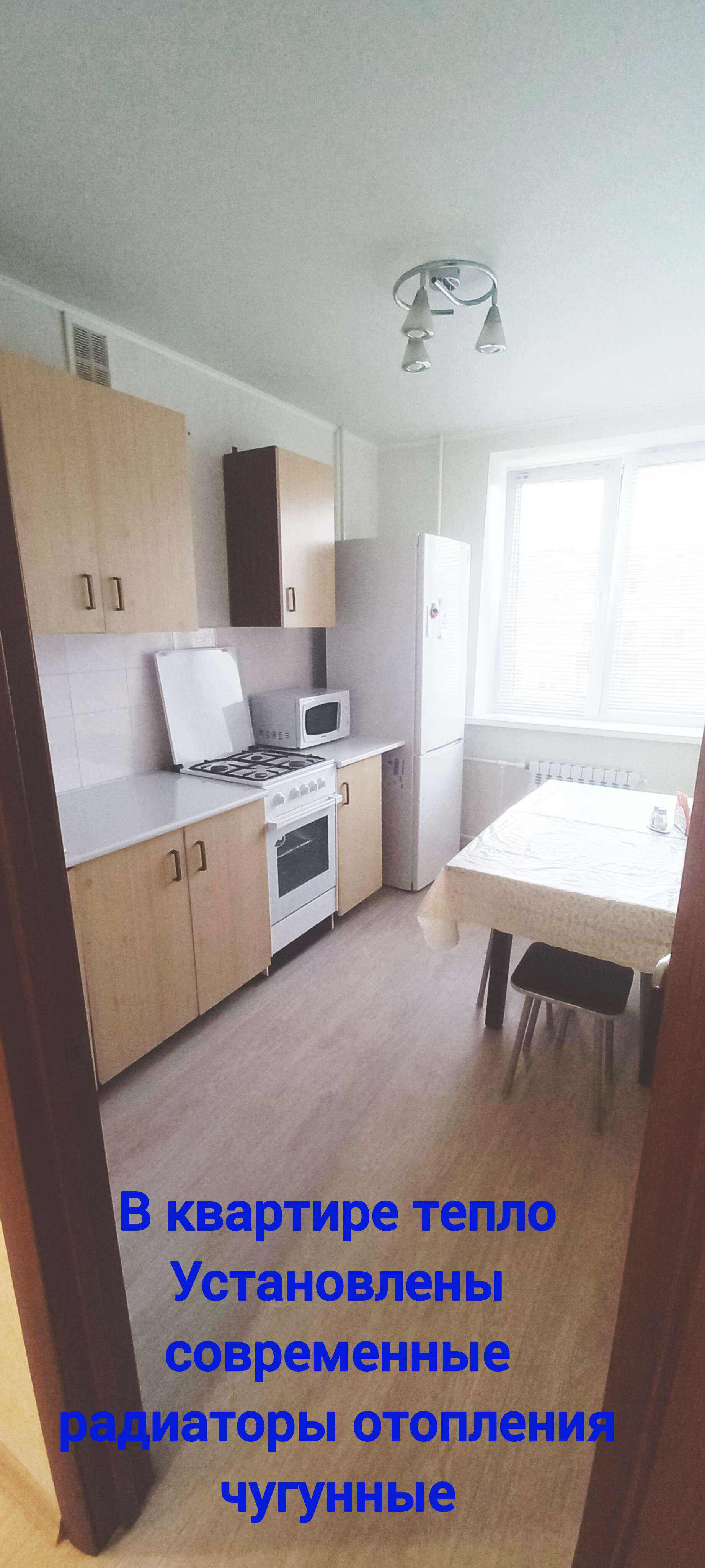 Ремонт сделан от и до: полы и стены выровнены, качественные напольные покрытия, межкомнатные двери, предметы сантехники, произведена замена радиаторов отопления, заменены все трубы.