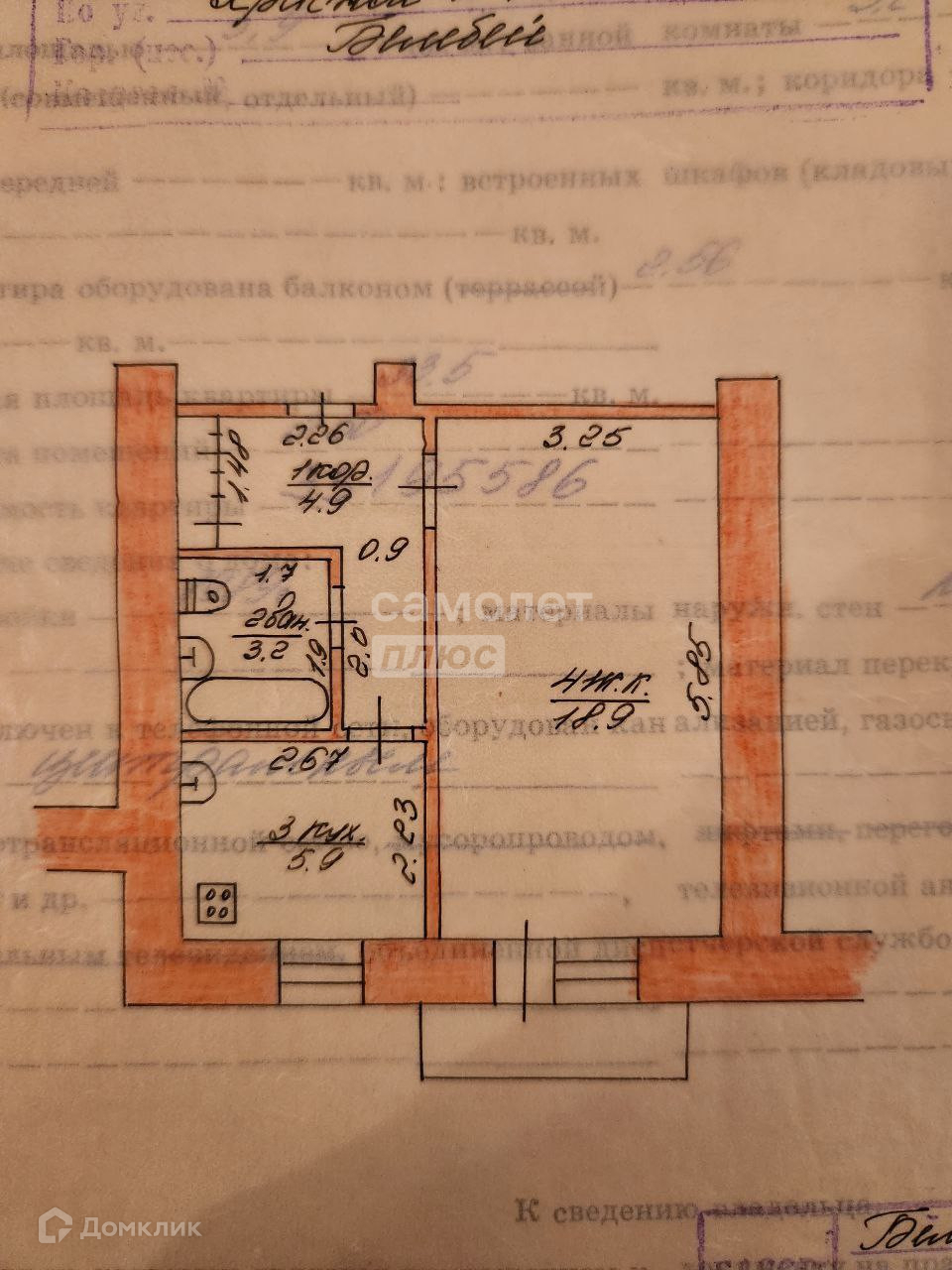 Общая площадь 32.9 м2