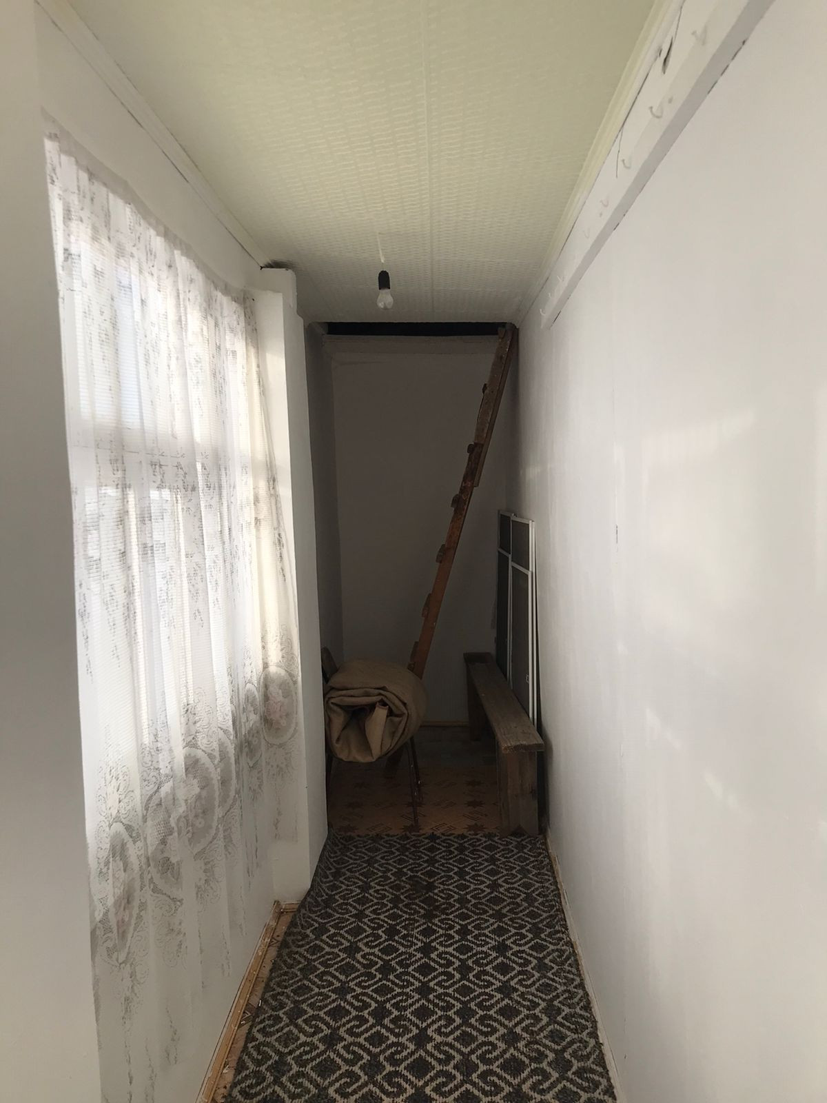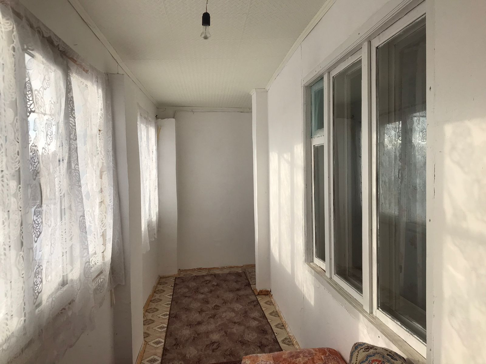 Очень большая лоджия (12,03 + 6,50 метров) только на лоджии деревянные окна.