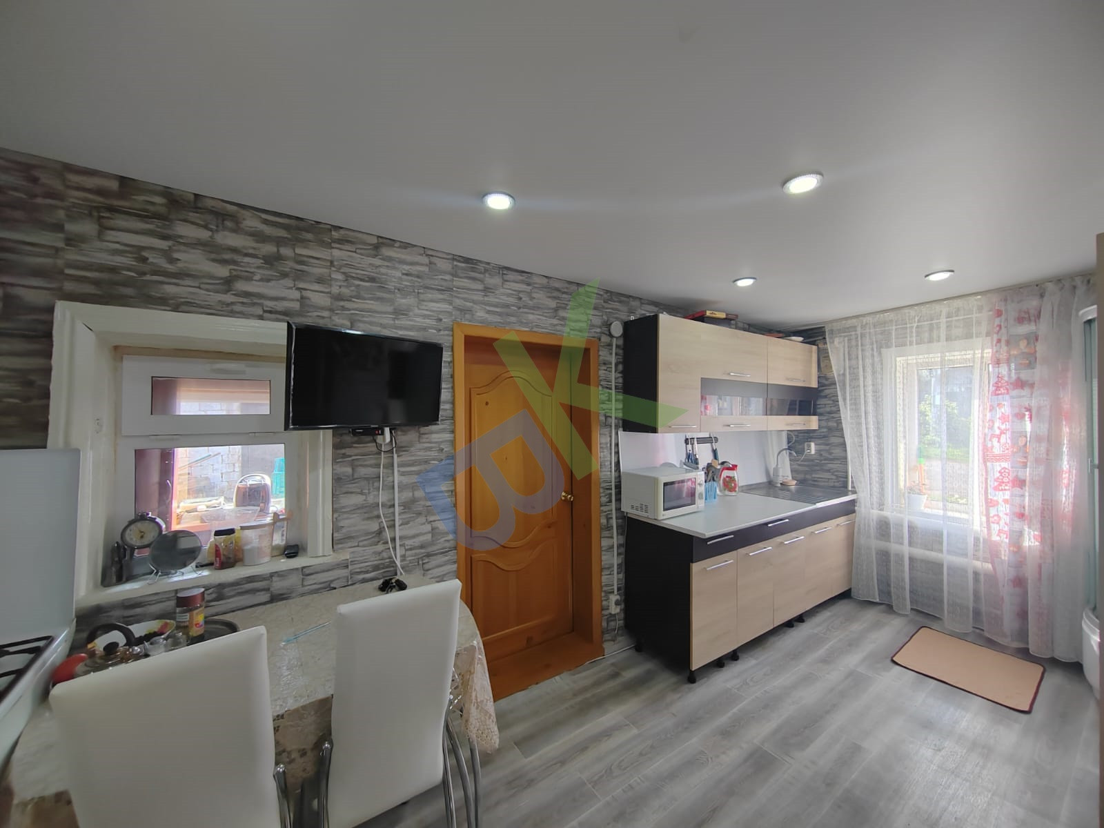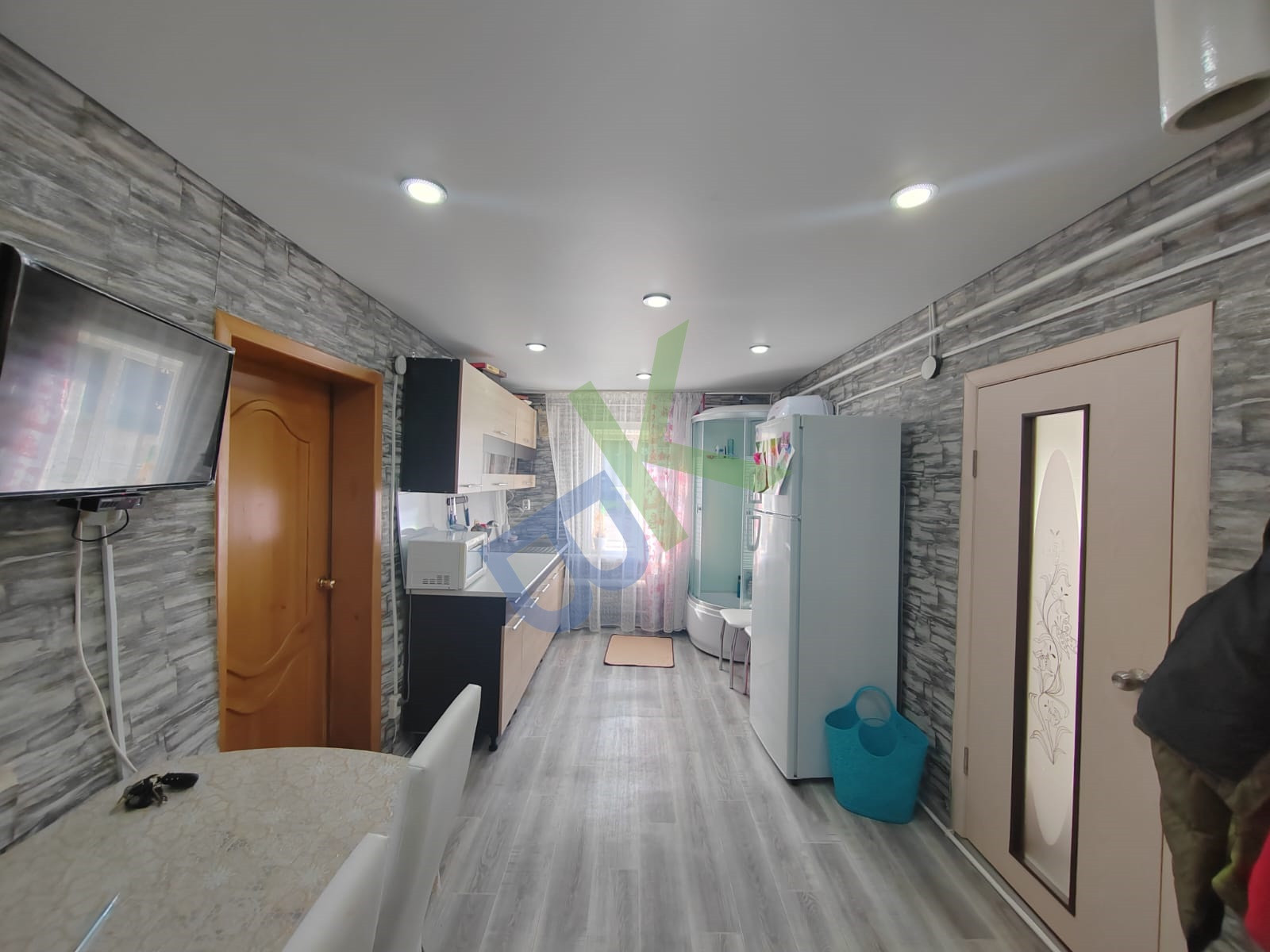 Окна ПВХ, натяжные потолки, на полу линолеум, новые межкомнатные и входная двери.