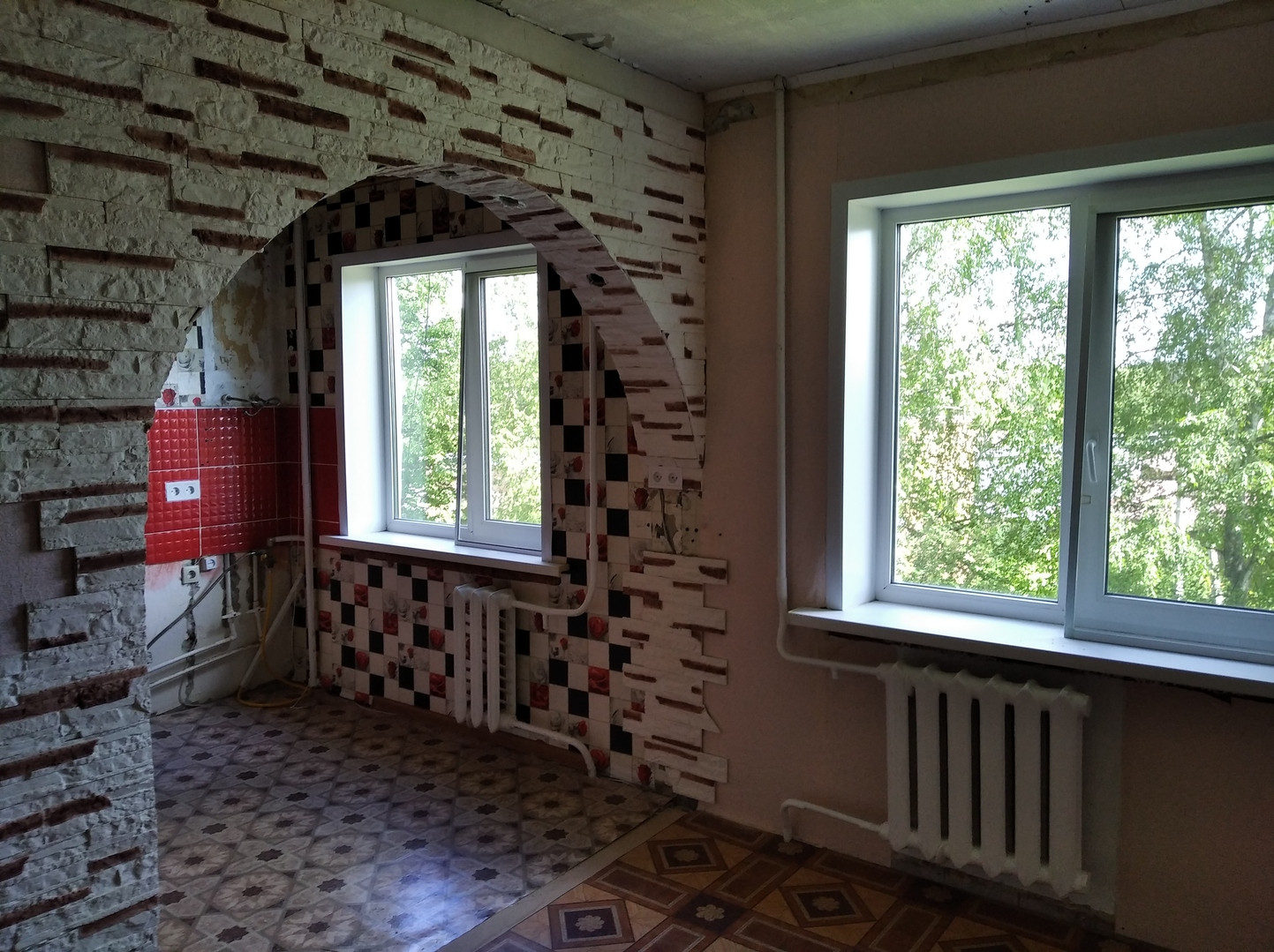 В квартиру потребуются: раковины в ванную и кухню, газовая плита, газовая колонка, линолеум(ламинат или что-то подобное) в зал.