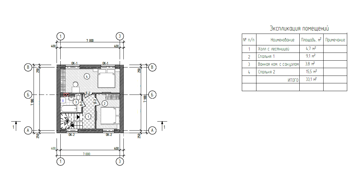 Общая площадь 70.67 м2