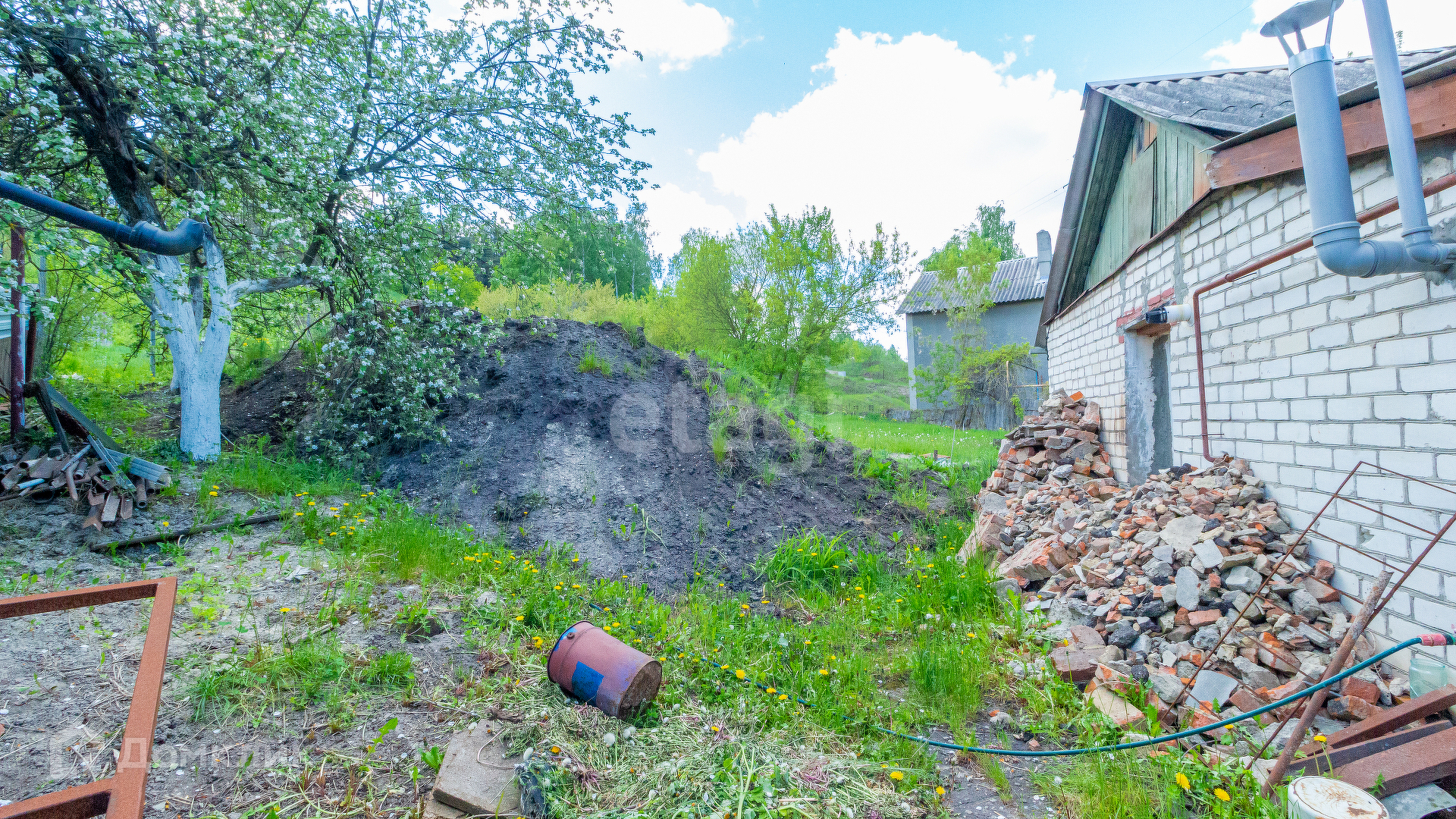 Также на участке расположены хоз.постройки. Участок подходит для индивидуального жилищного строения: есть выровненная площадка под стройку, во дворе выложили тротуарную плитку.