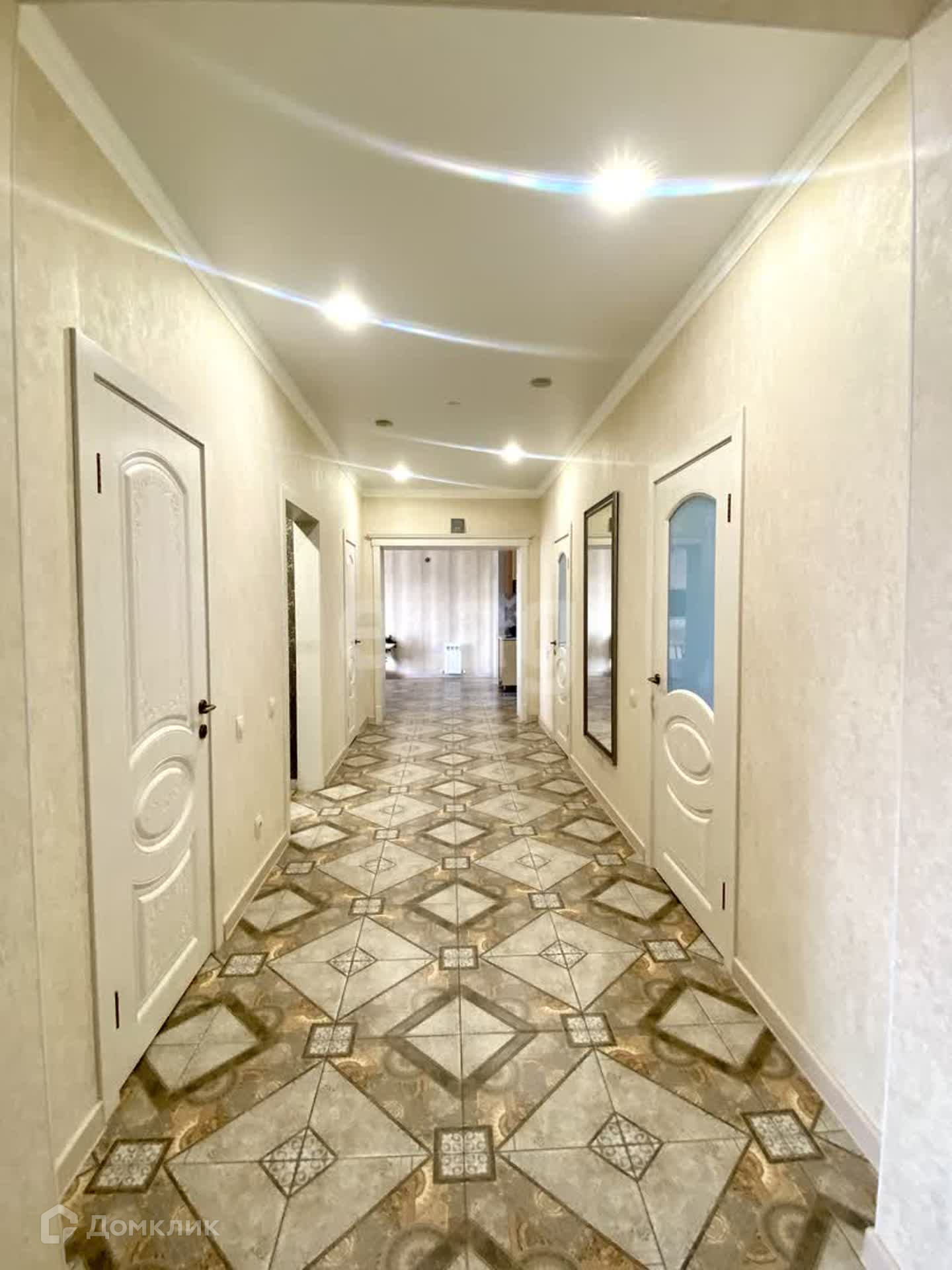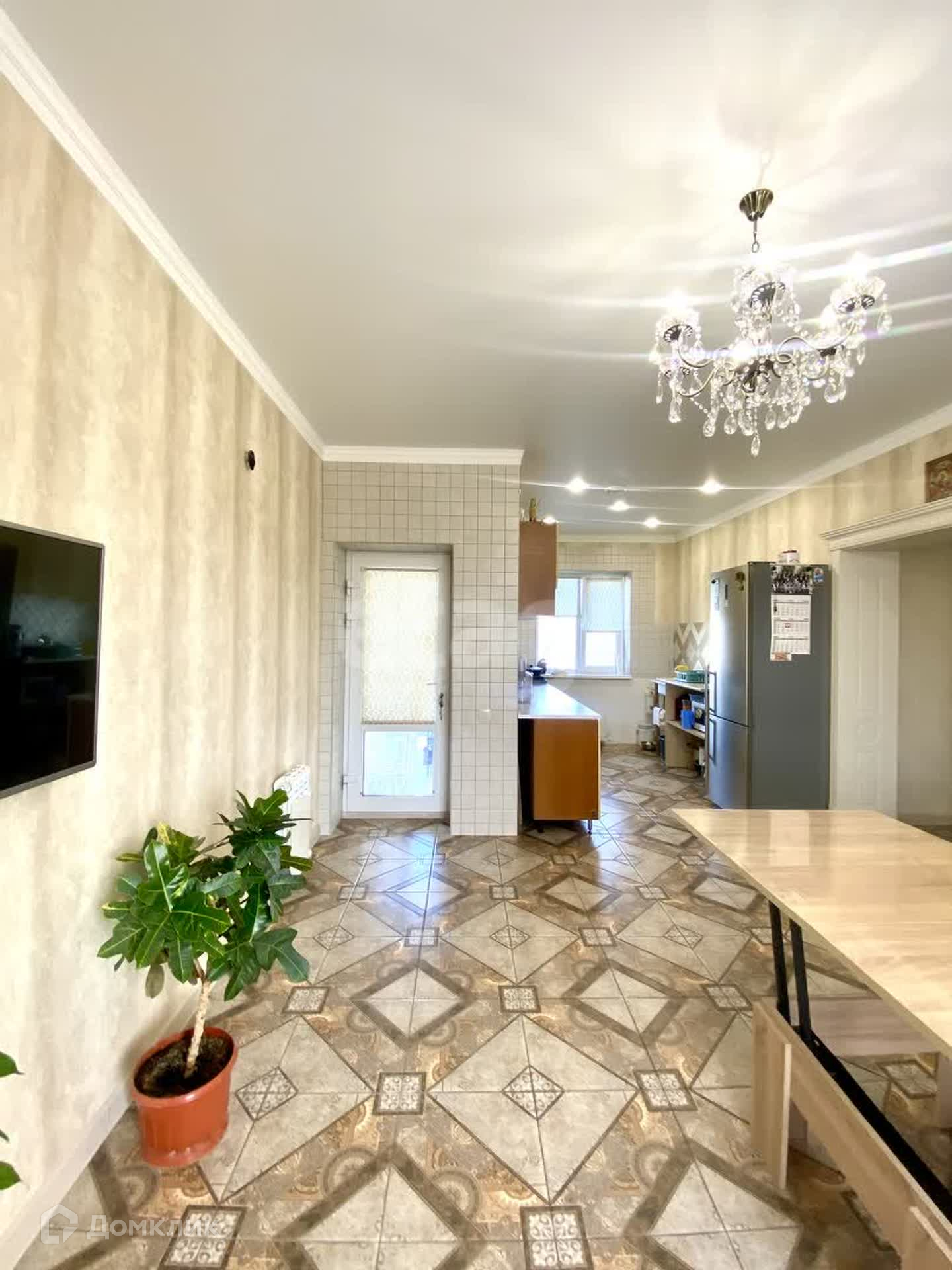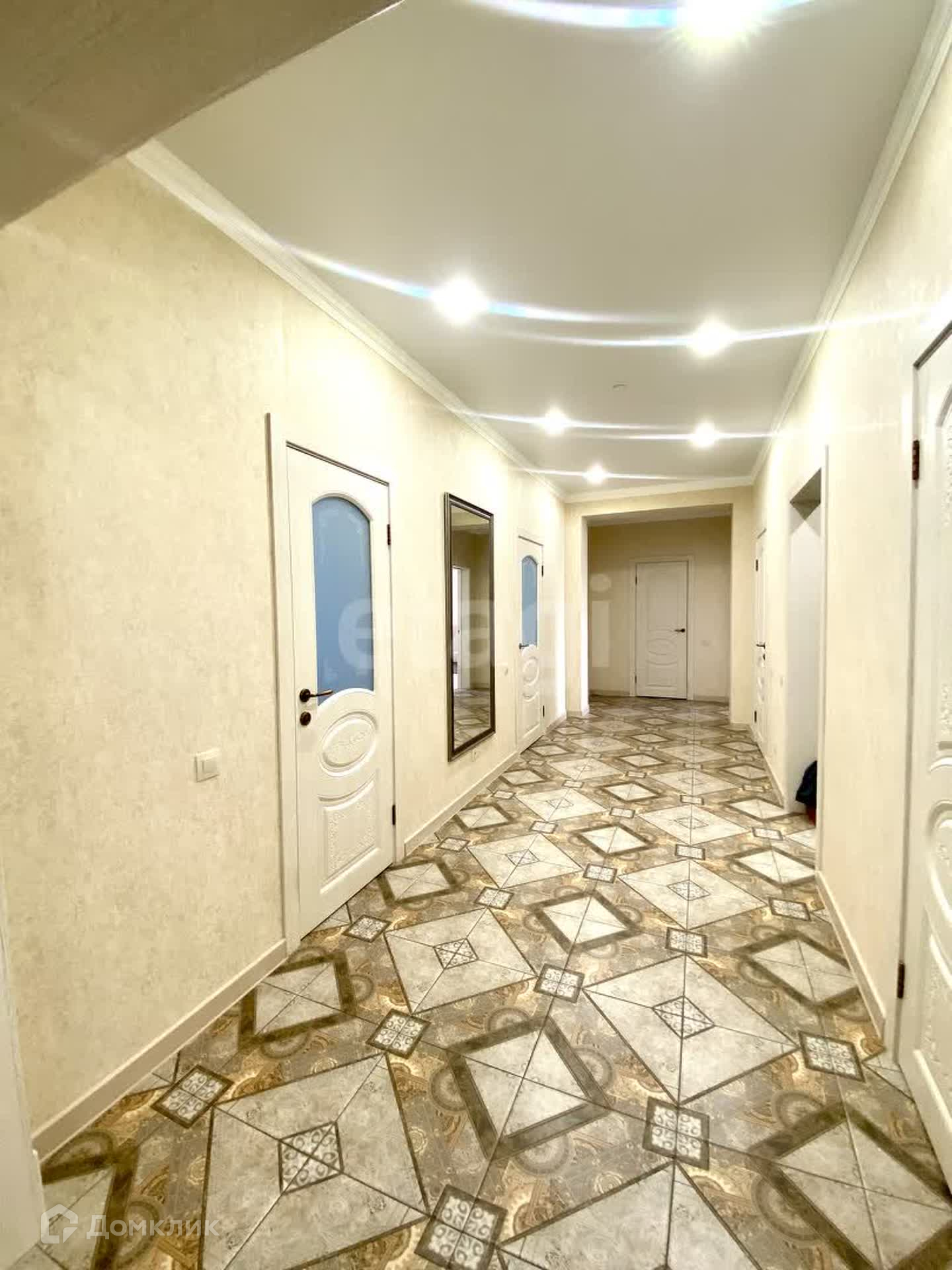 В доме выполнен качественный ремонт в светлых тонах: на полу в прихожей гостиной и кухне керамогранит, в комнатах постелен ламинат, на стенах обои, натяжные потолки с точечными светильниками , сан.узлы в современной кафельной плитке с качественной сантехникой.