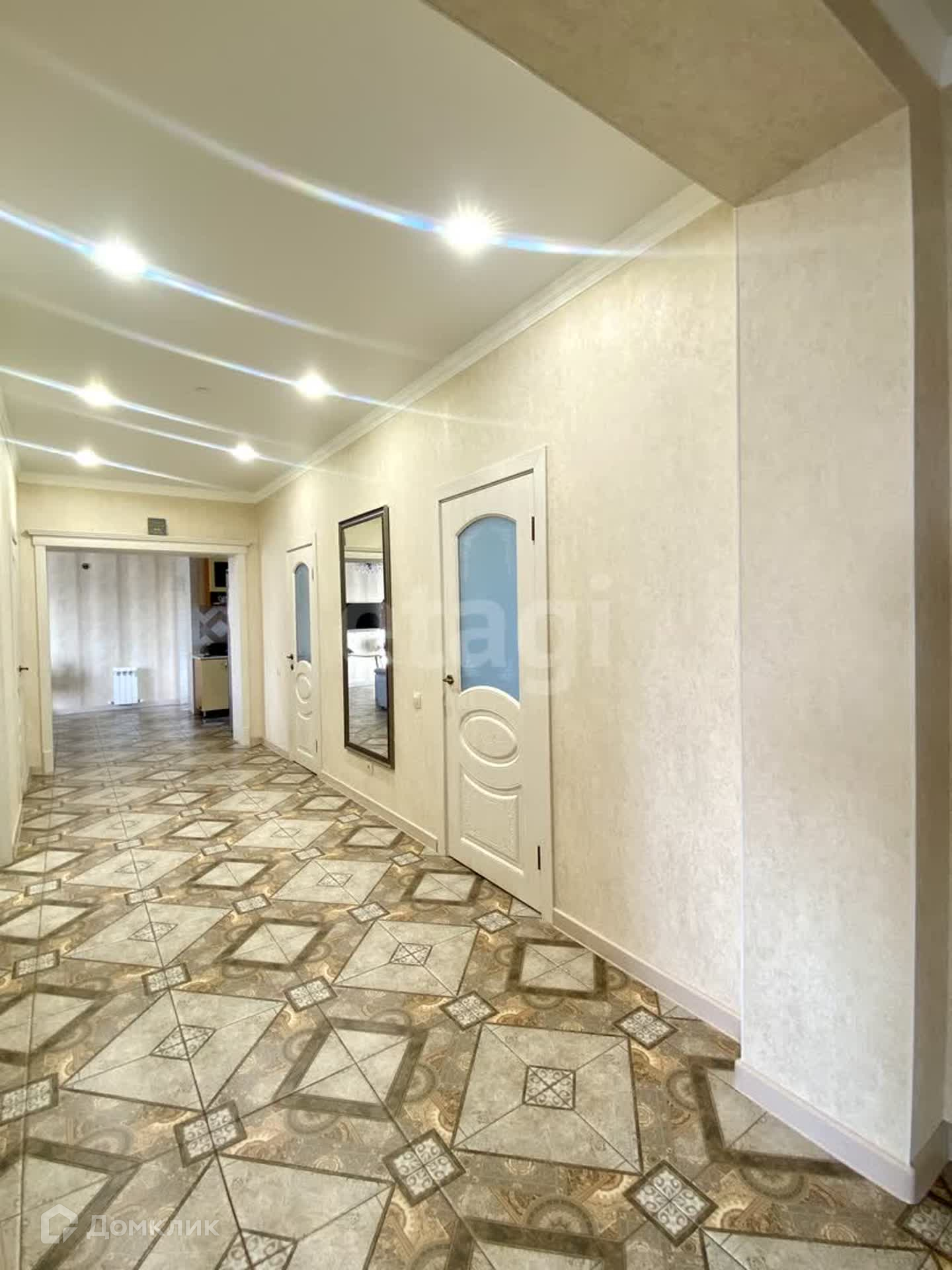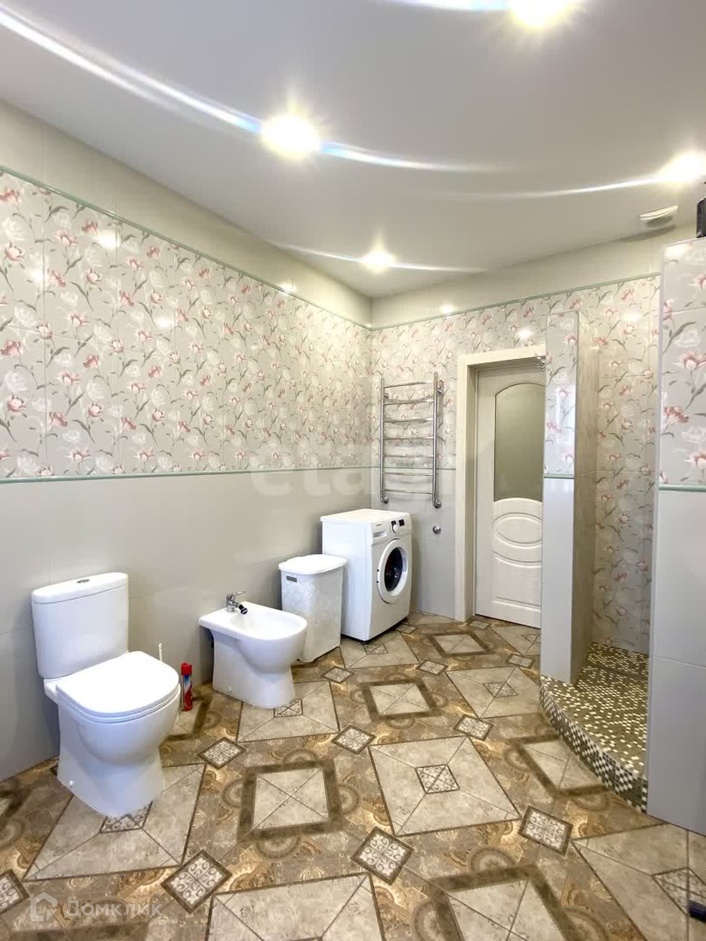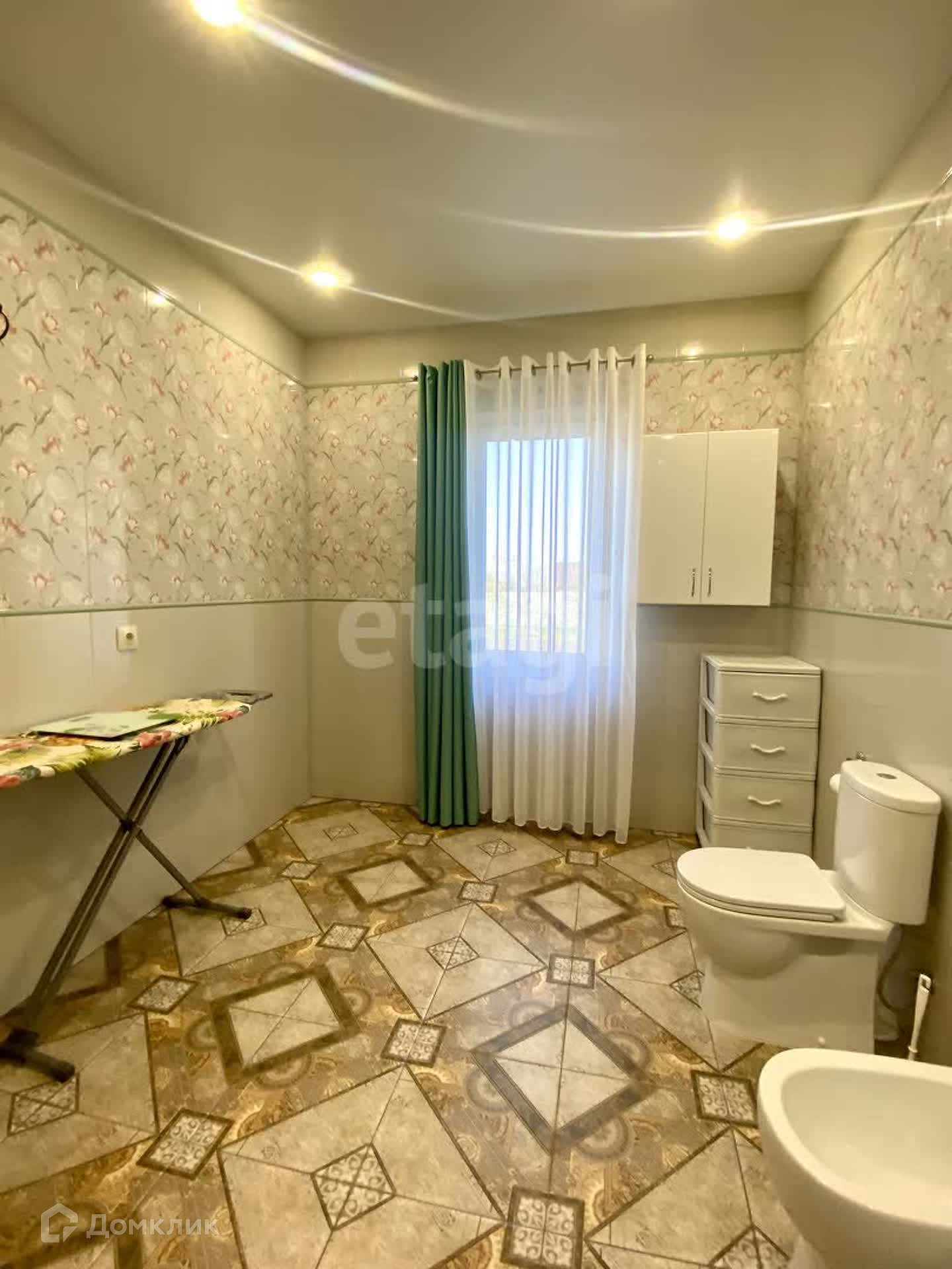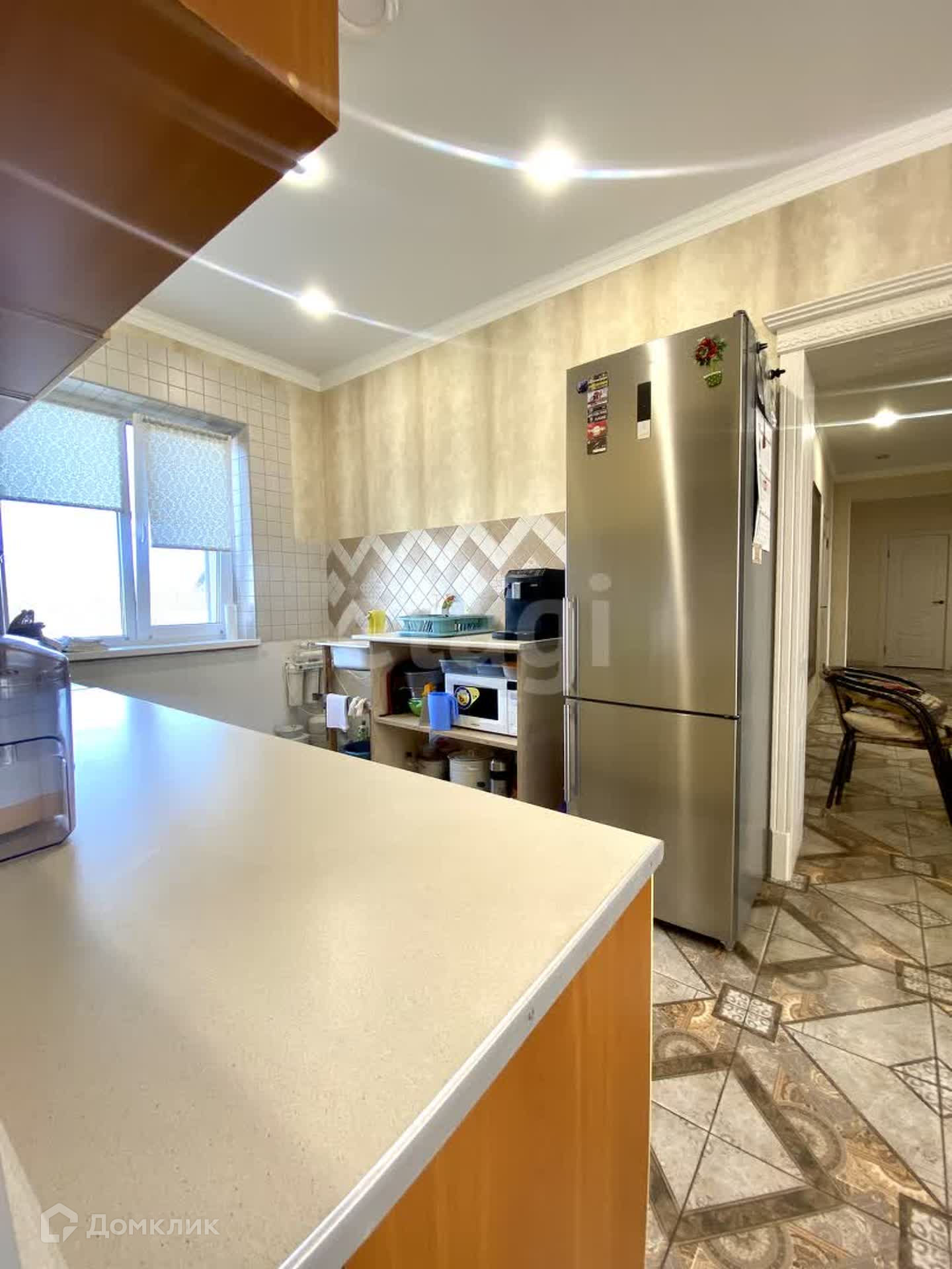 В доме выполнен качественный ремонт в светлых тонах: на полу в прихожей гостиной и кухне керамогранит, в комнатах постелен ламинат, на стенах обои, натяжные потолки с точечными светильниками , сан.узлы в современной кафельной плитке с качественной сантехникой.
