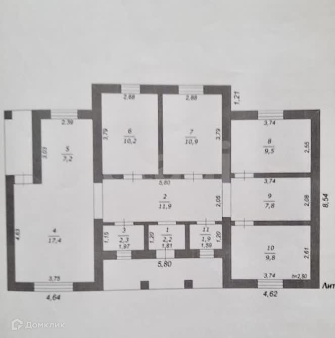 Три жилых изолированных комнаты: 10,9 9,5 и 9,8 м2 .