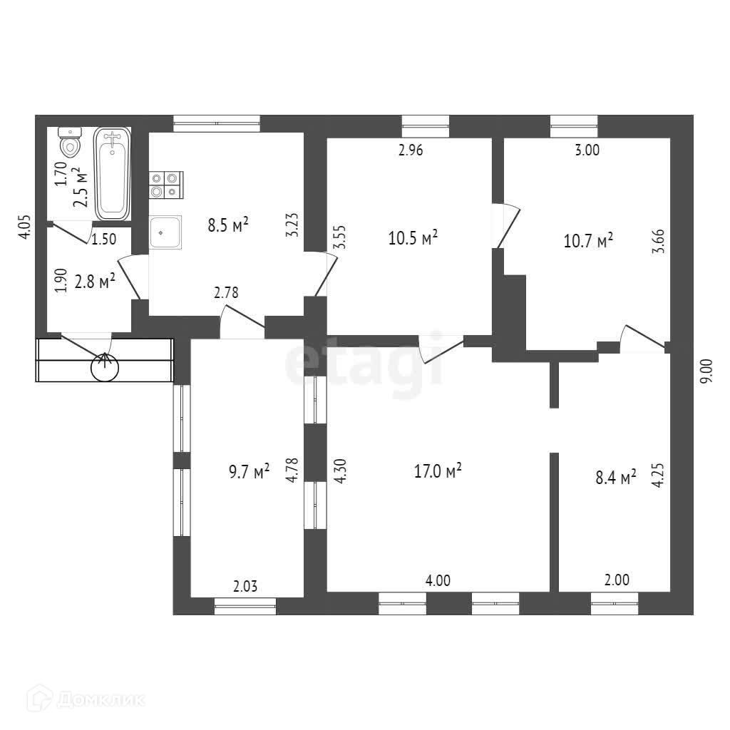Общая площадь 70.3 м2