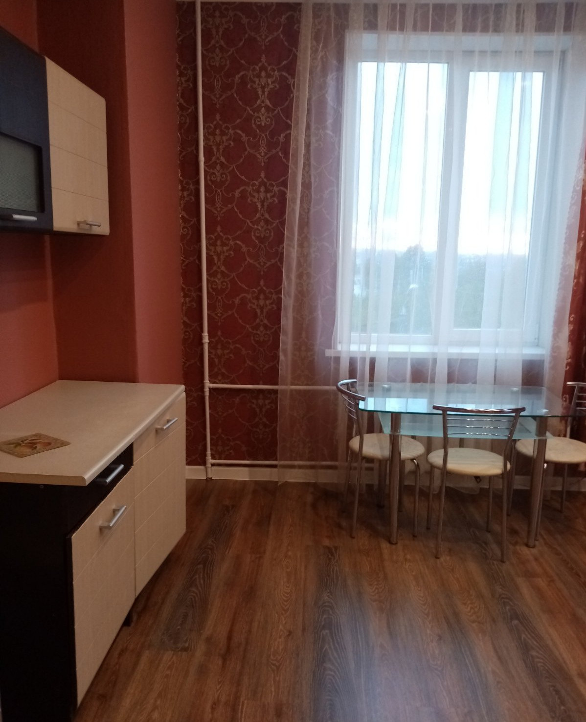 Комната в общежитии 23 кв.м, комната после ремонта. В комнате два окна ПВХ, шторы, кухонная зона:  кухонный гарнитур.