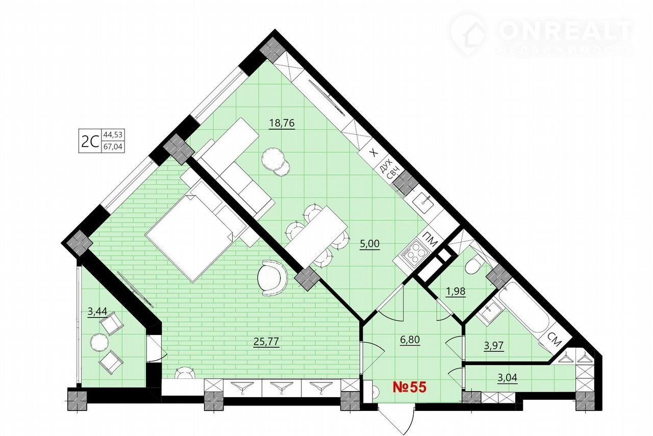 Удобная и продуманная планировка позволит вам гармонично и удобно расставить мебель.
