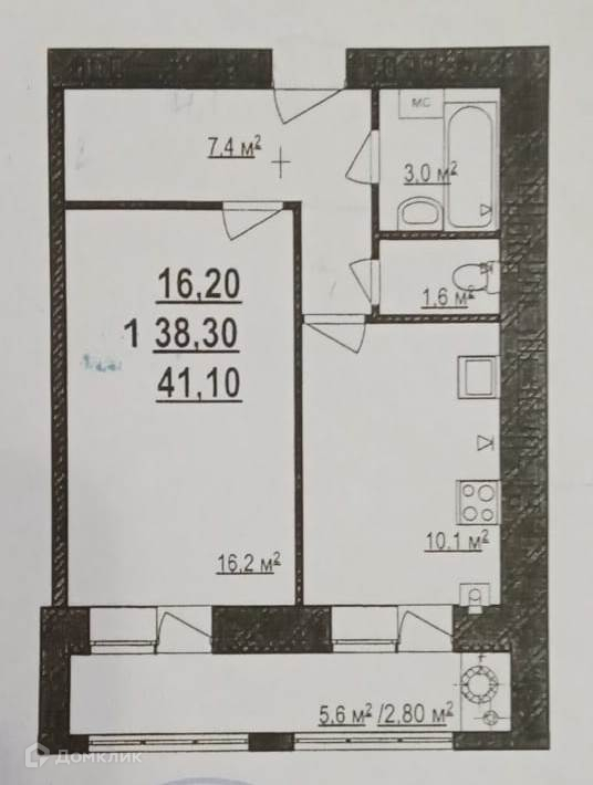 Общая площадь 43 м2