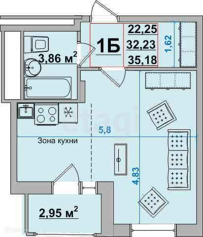 Общая площадь 35.2 м2