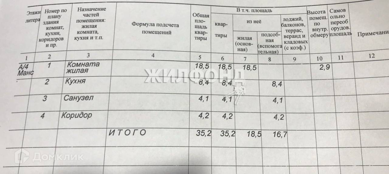 Общая площадь 35.4 м2