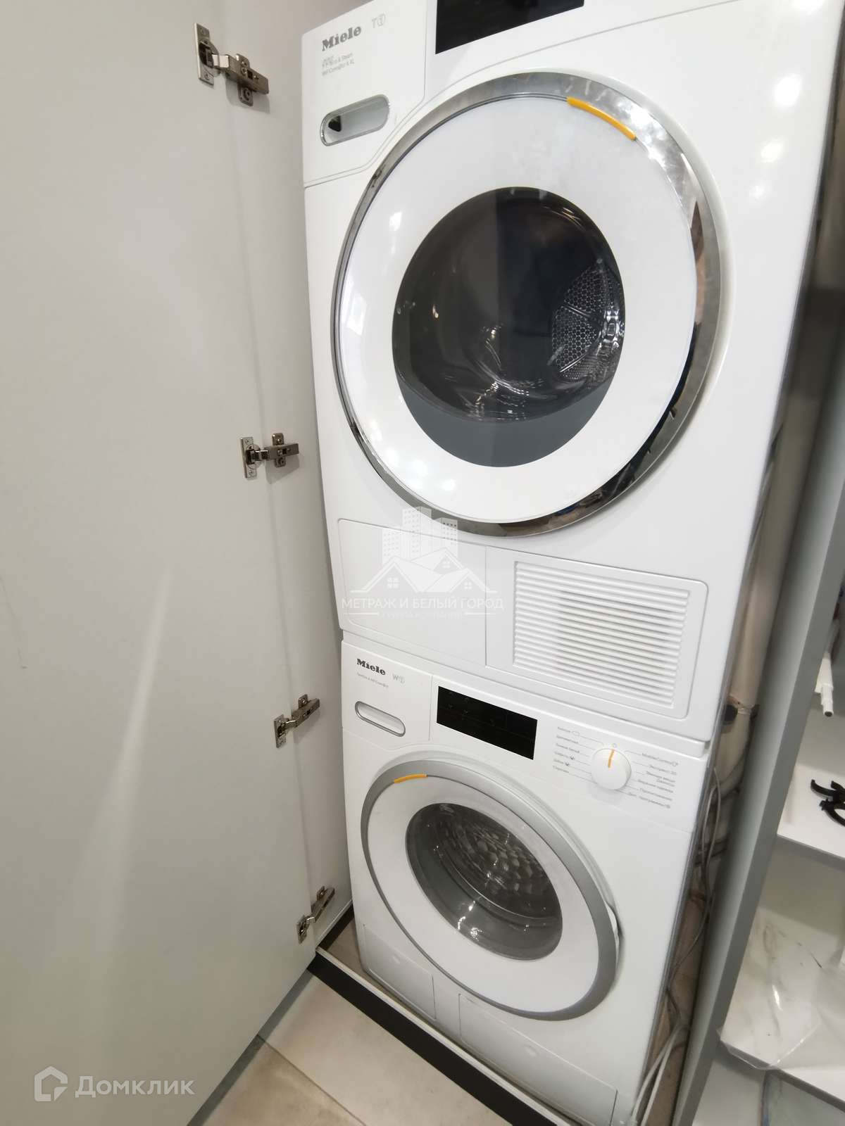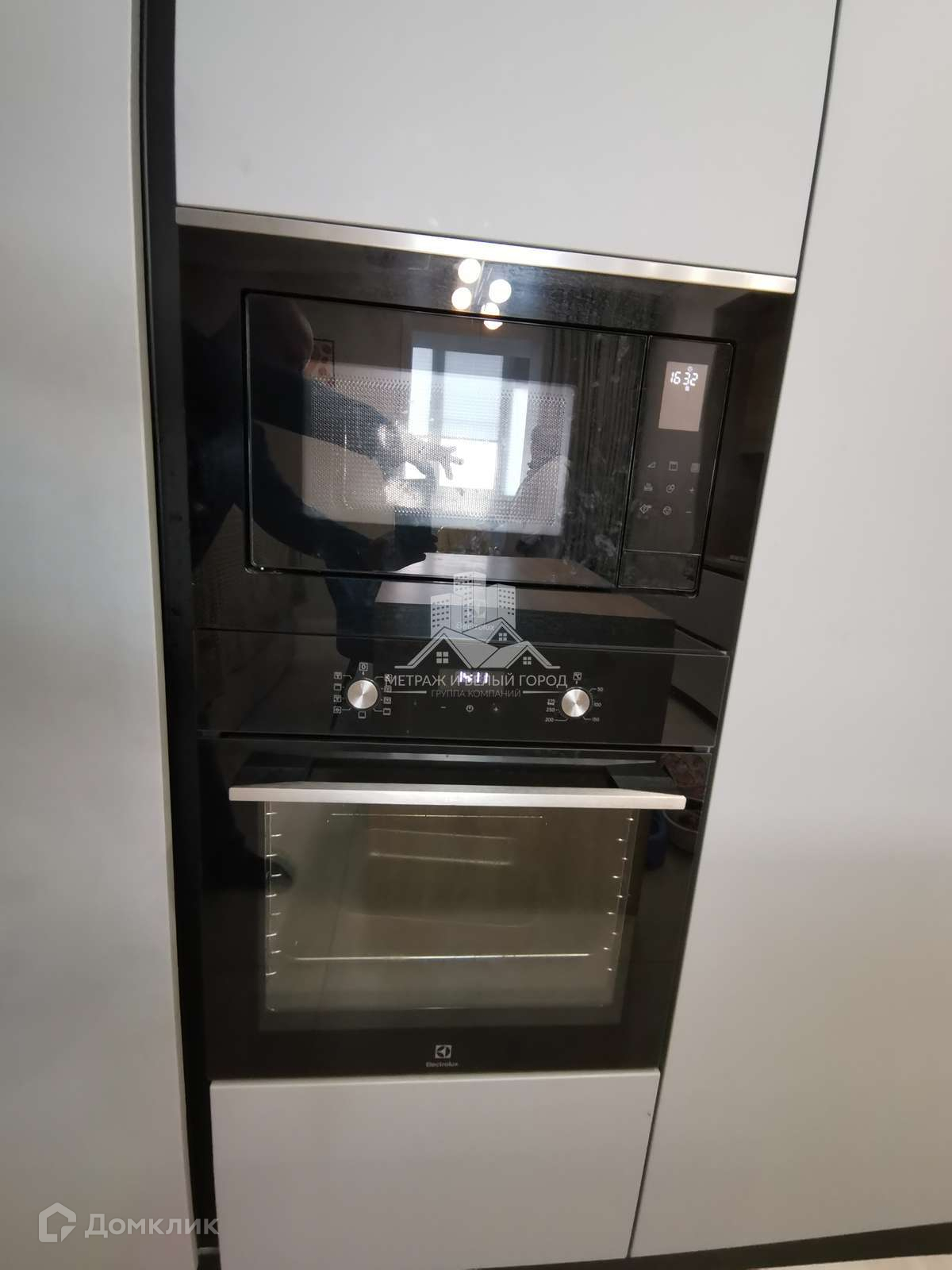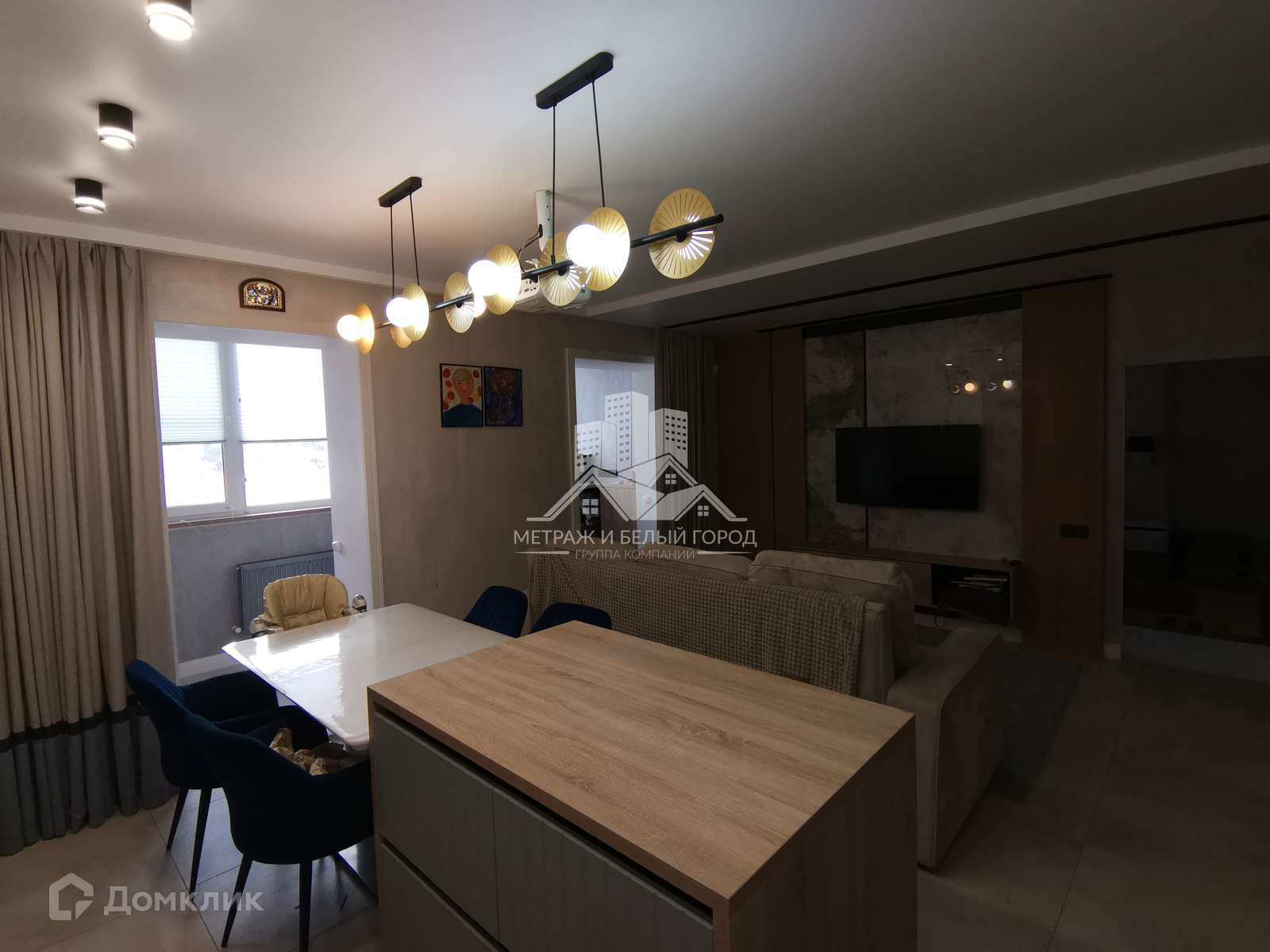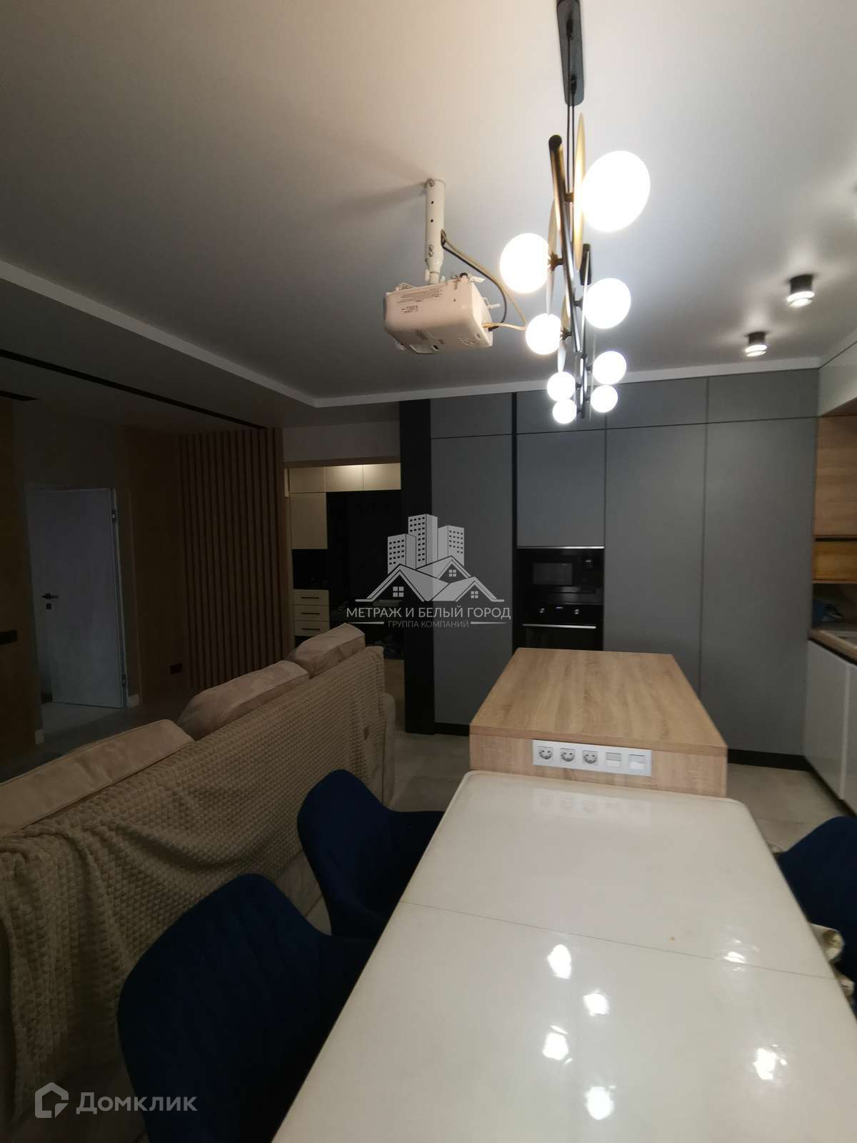 В кухне-гостиной установлен кухонный гарнитур со встраиваемой бытовой техникой Electrolux: газовая варочная панель, духовой электрический шкаф, микроволновая печь. Также встроенный холодильник и две стиральные машины. В гостиной зоне установлен домашний кинотеатр с проектором и подвесным экраном. Из кухни-гостиной два выход на большую лоджию.