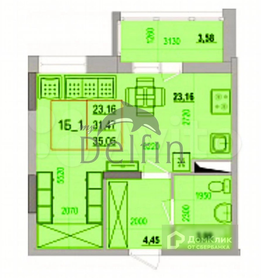 Общая площадь 35.02 м2