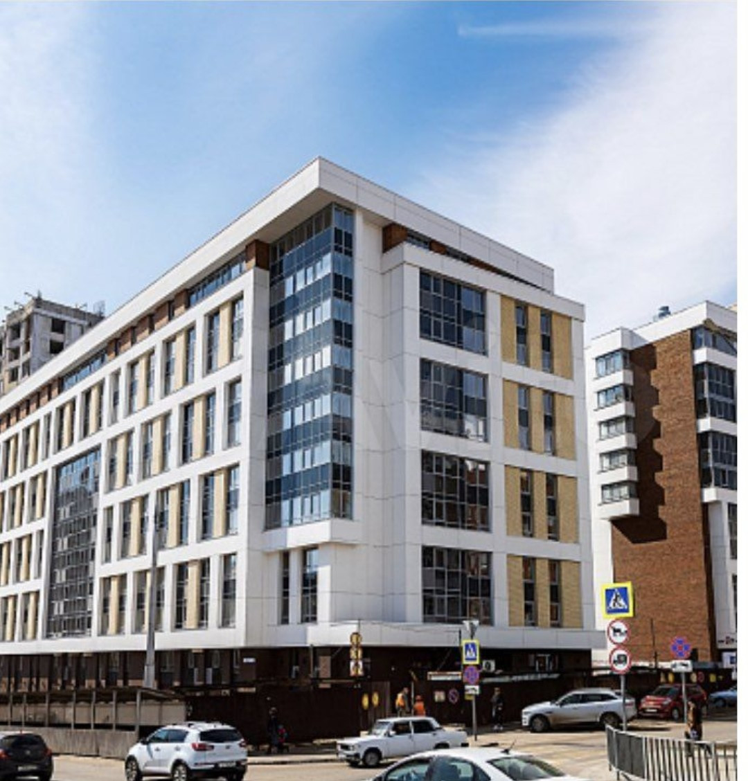 Материал стен здания: блок, декоративный кирпич, фасадная панель. Толщина стен 60 см. В квартире отделка от строителей "под ключ": натяжные потолки, на полу ламинат, в санузле керамогранит, стены - керамическая плитка, в квартире стены выровнены, оклеены обоями.
