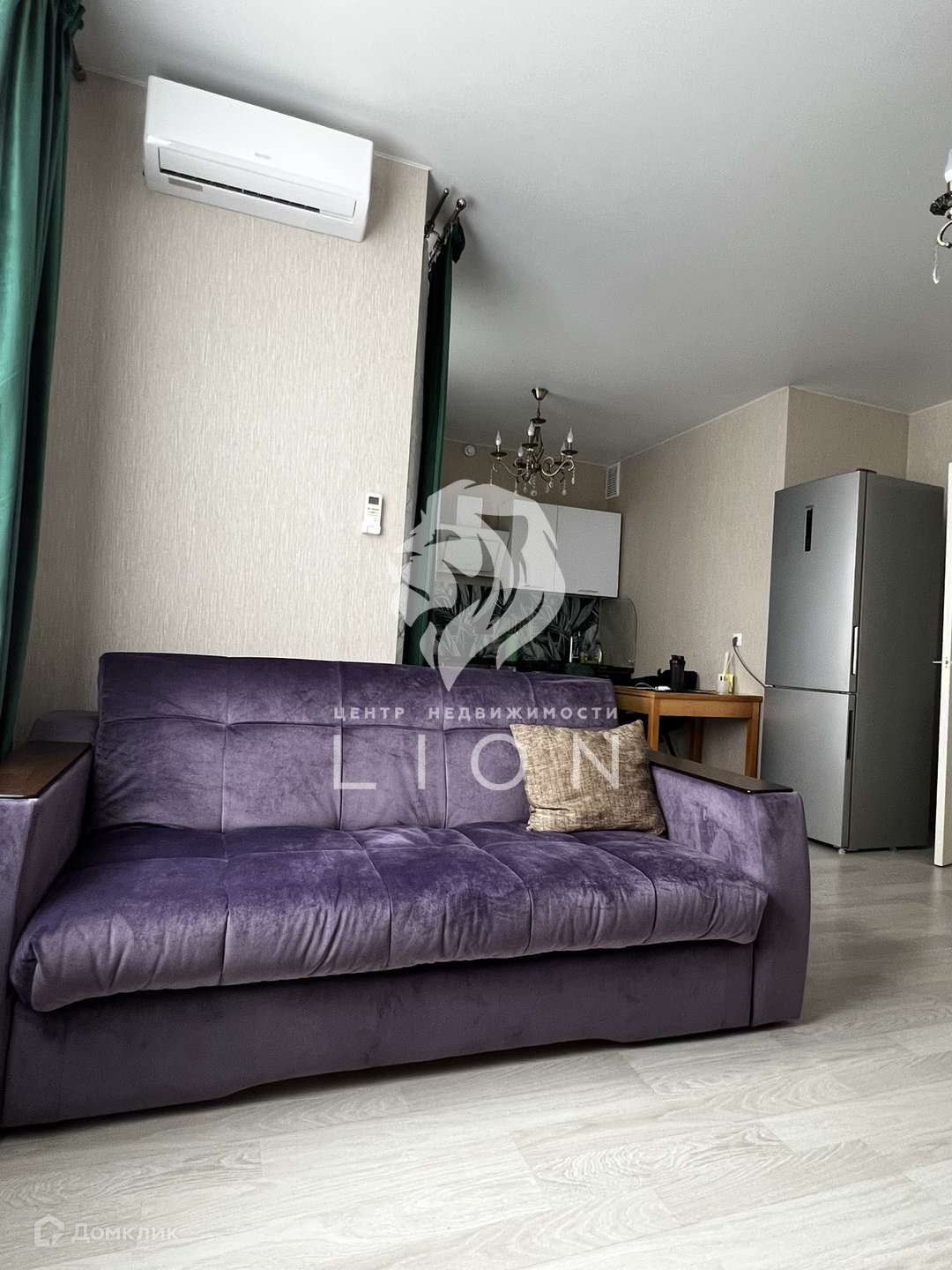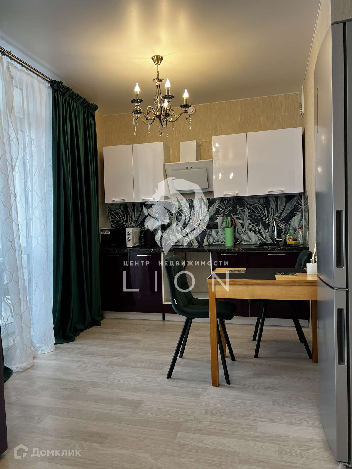 При продаже остаётся кухонный гарнитур, варочная панель, вытяжка, кондиционер, люстры, встроенный шкаф, зеркало, шторы и карнизы.