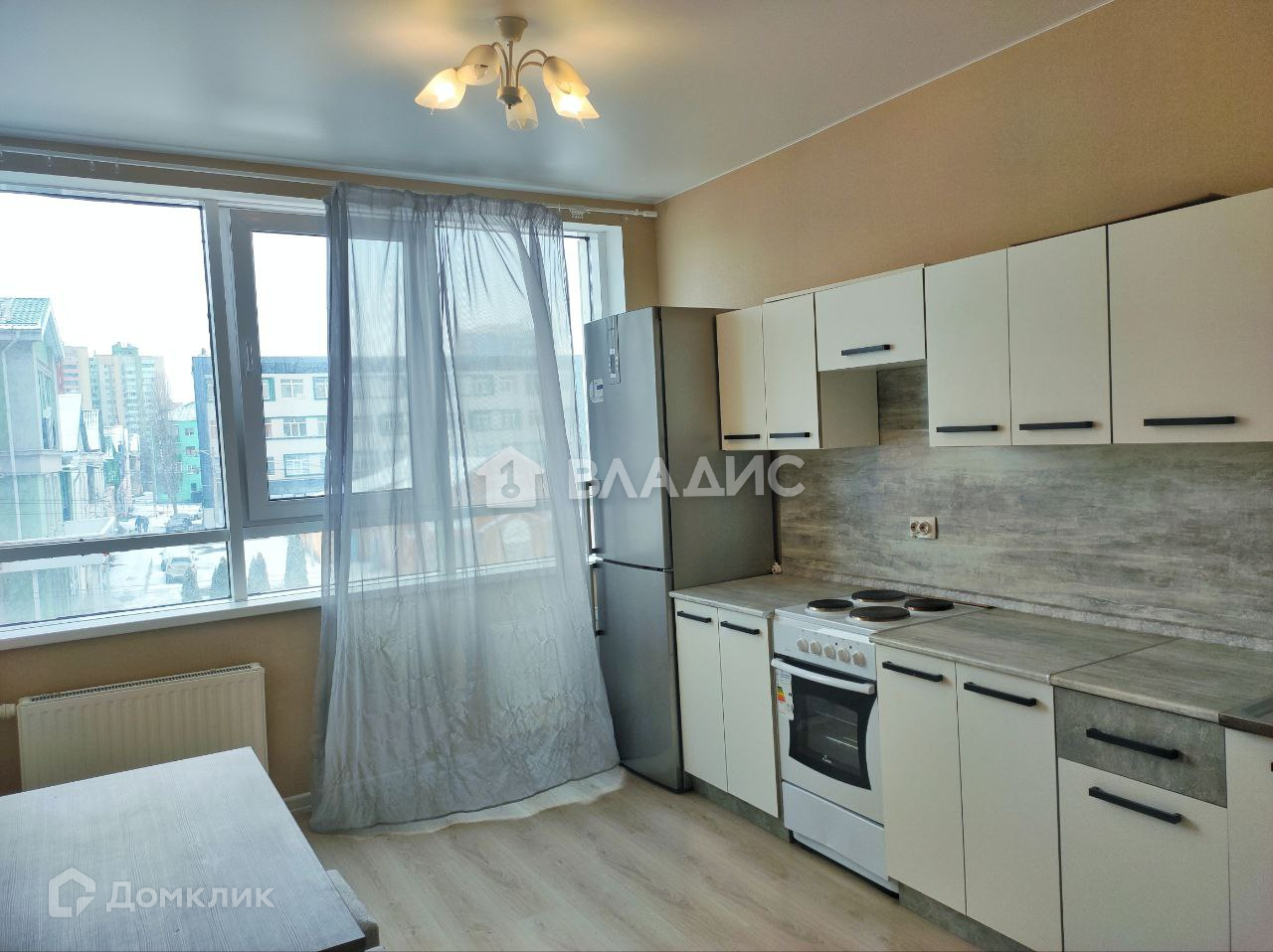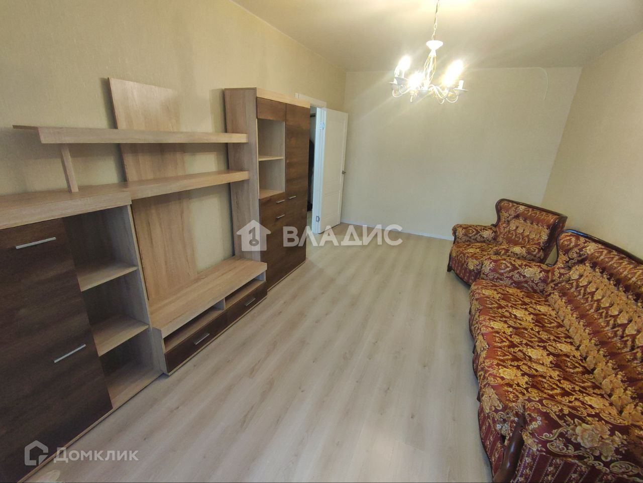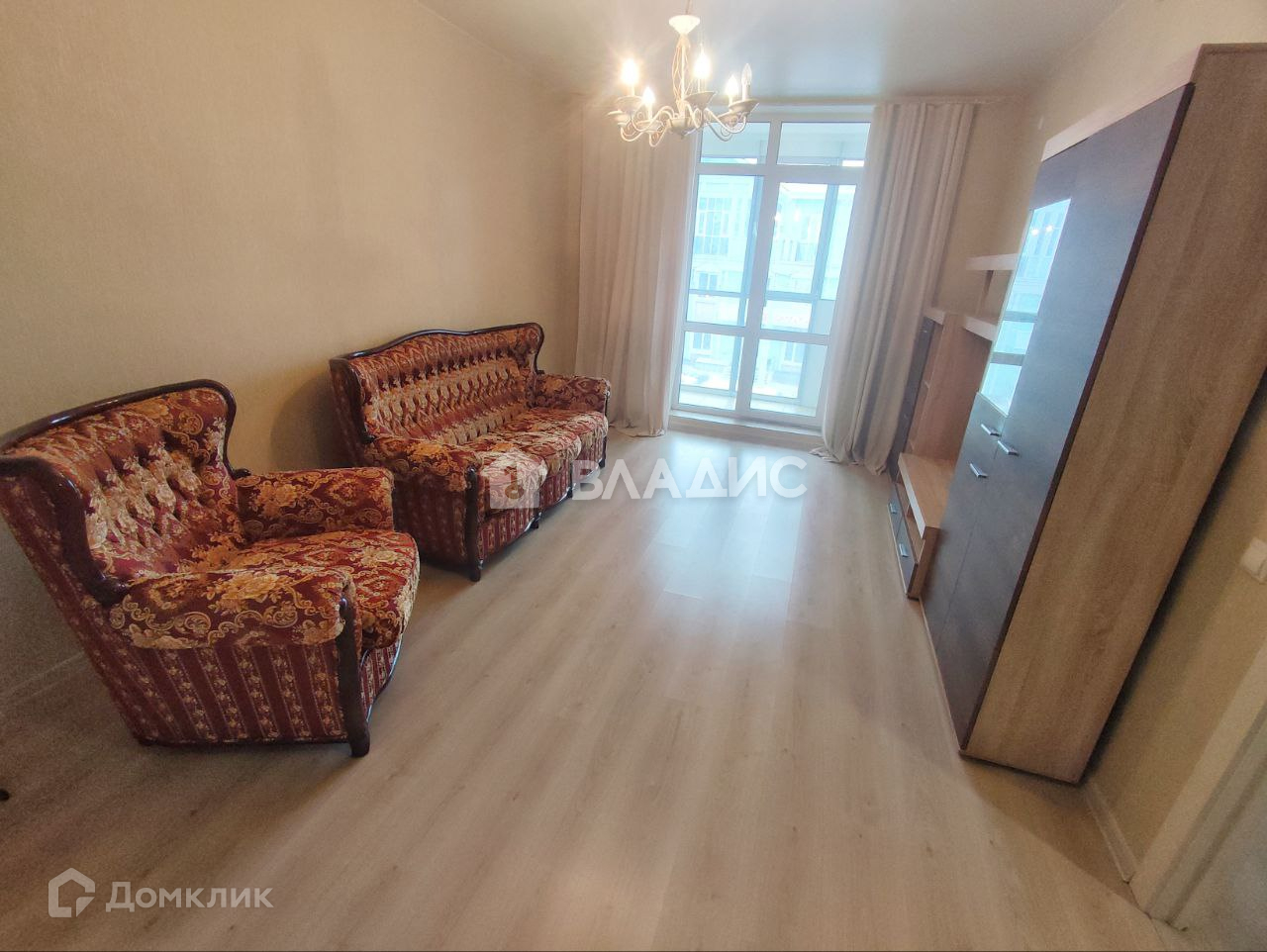 В квартире при продаже счастливым новым владельцам остаётся гардеробный шкаф, кухонный гарнитур, кухонный стол, стулья, плита, холодильник, стиральная машинка, большая мебелированная стенка, красивая люстра, винтажные кресло и диван.