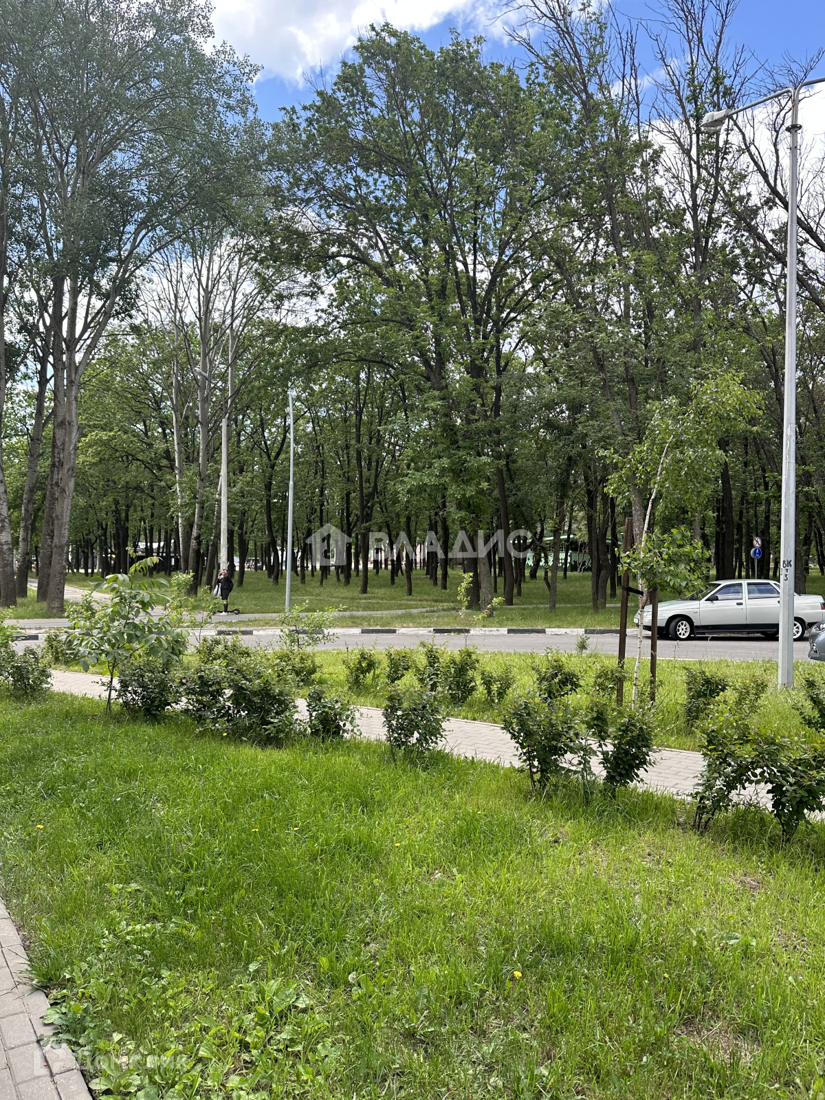 Лоджия остеклена с видом на парк.