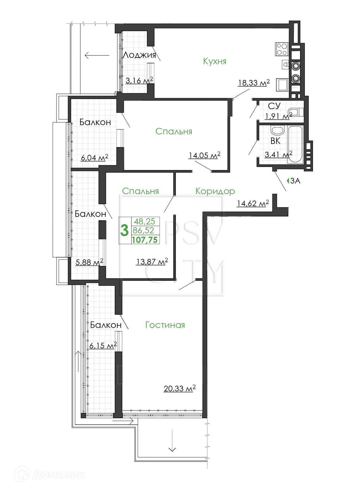Общая площадь 80 м2