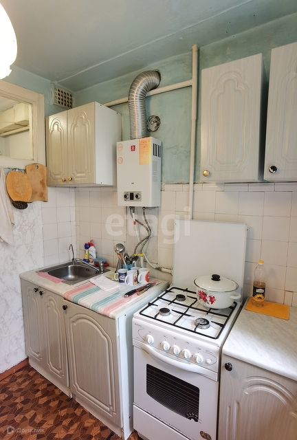 Планировка квартиры: две раздельные комнаты, совместный с/у и кухня. На кухне газовая колонка, так что горячая вода есть круглый год.