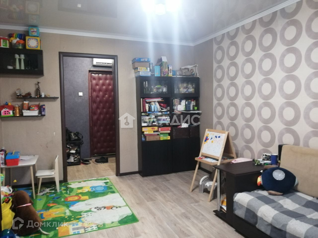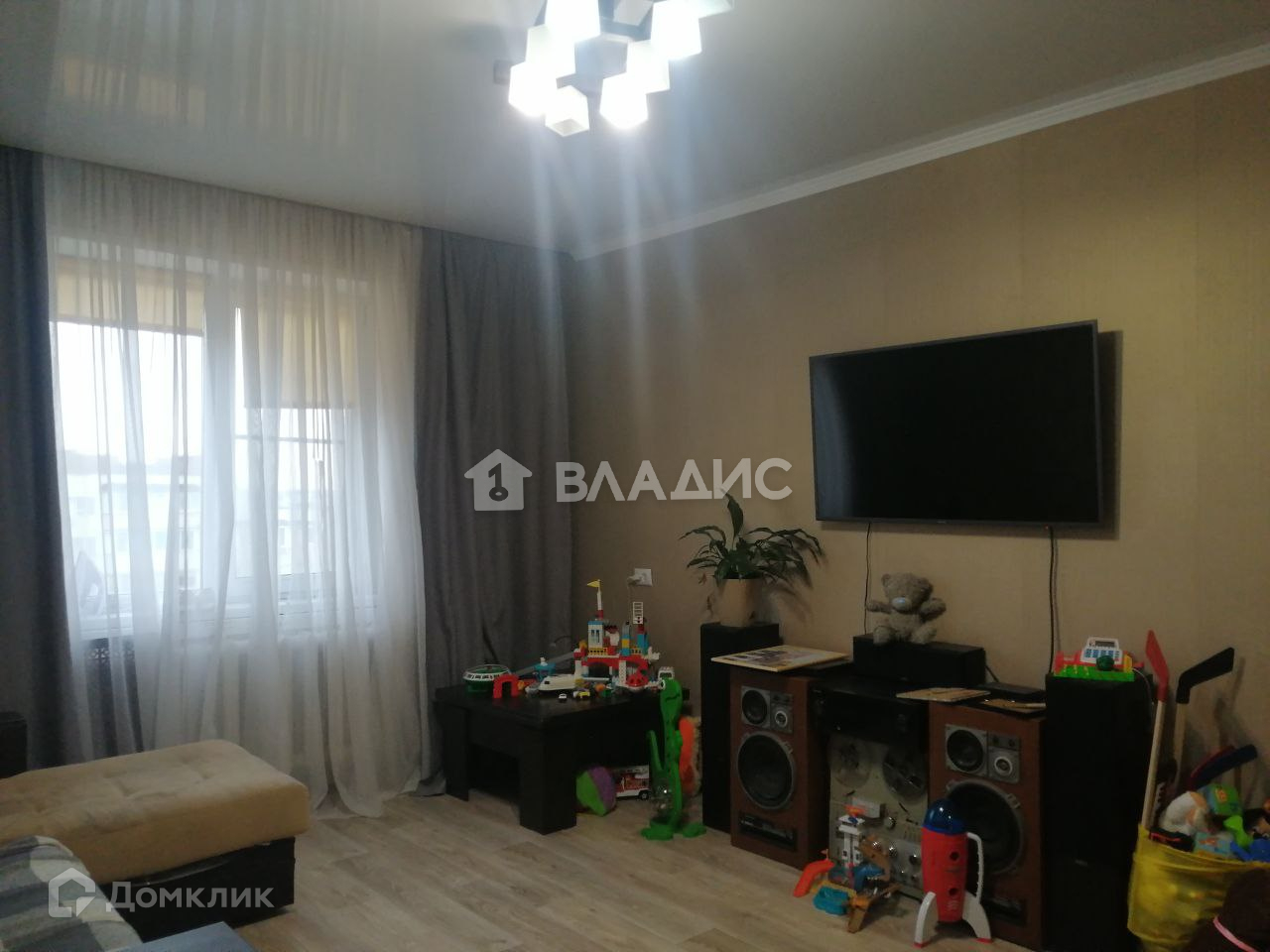 Состояние квартиры: в квартире выполнен качественный ремонт, стены выровнены и оклеены современными обоями, на полу ламинат повышенной прочности, натяжные потолки по всей квартире, с/у раздельный в новой плитке, полностью заменена сантехника, установлены новые счетчики. Окна пластиковые, тройной стеклопакет. В комнате остаётся кондиционер! В квартире остаётся всё необходимое для проживания!