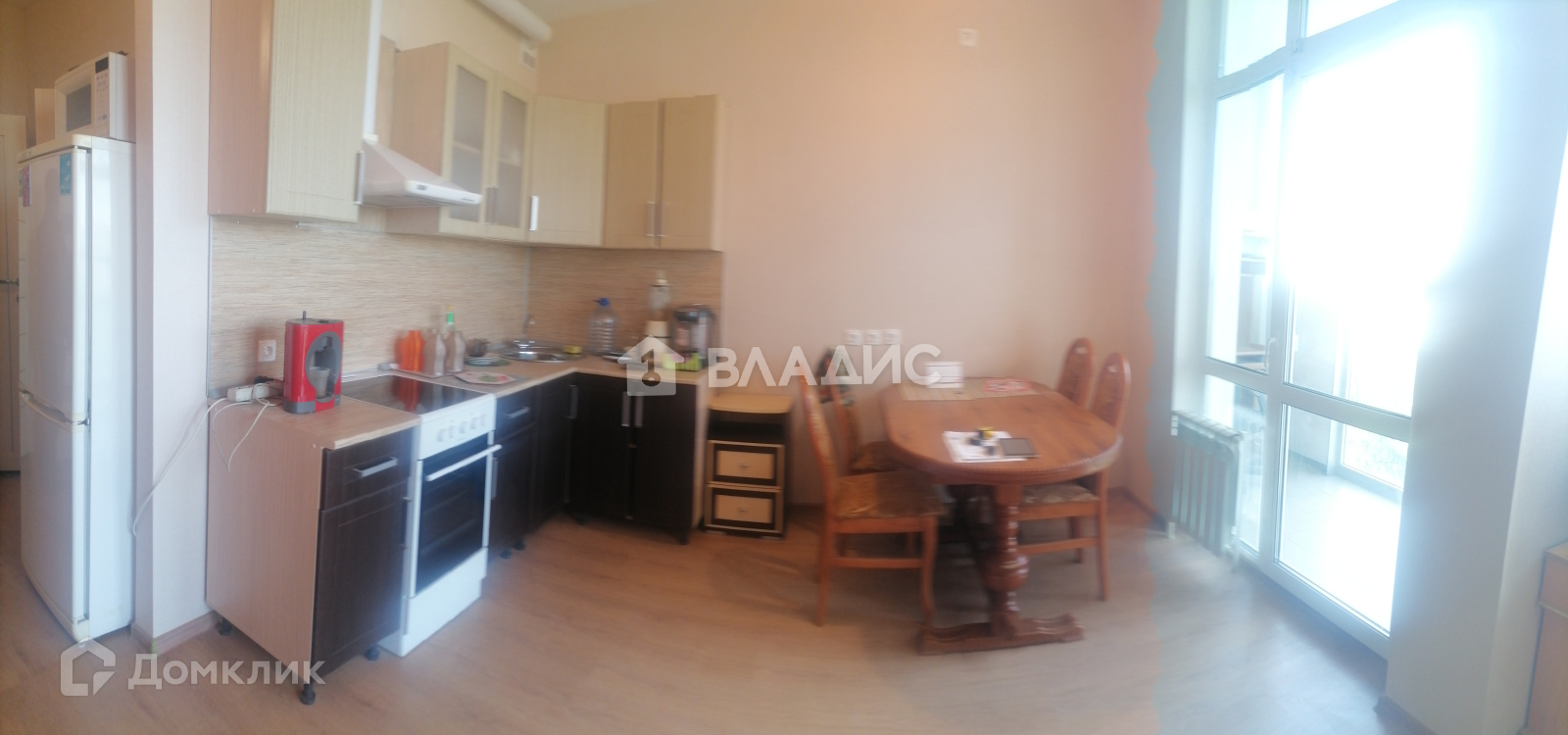 В кухне большие окна увеличивают пространство и создают уют. Мебель остается частично, по договоренности.