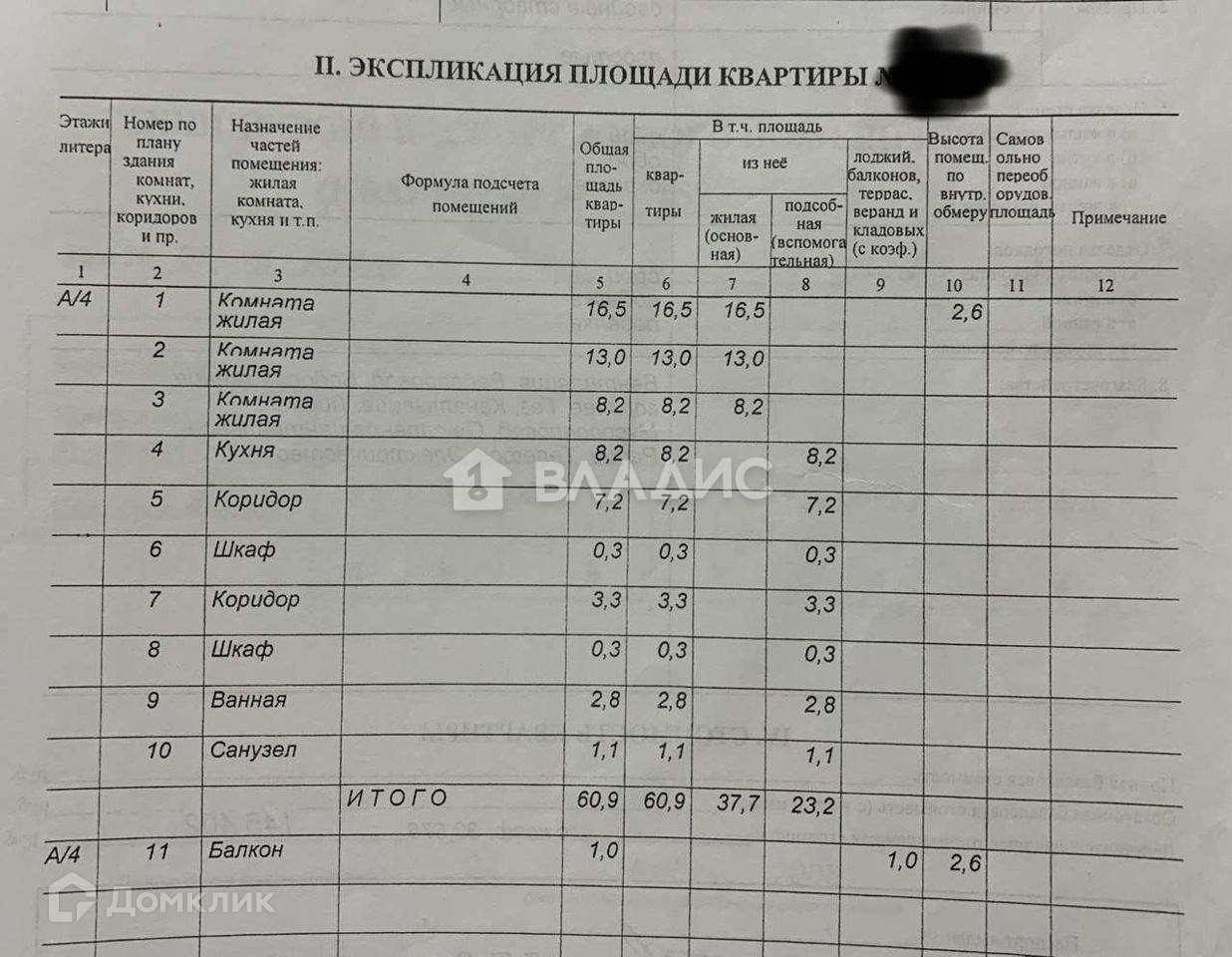 Общая площадь 60.9 м2