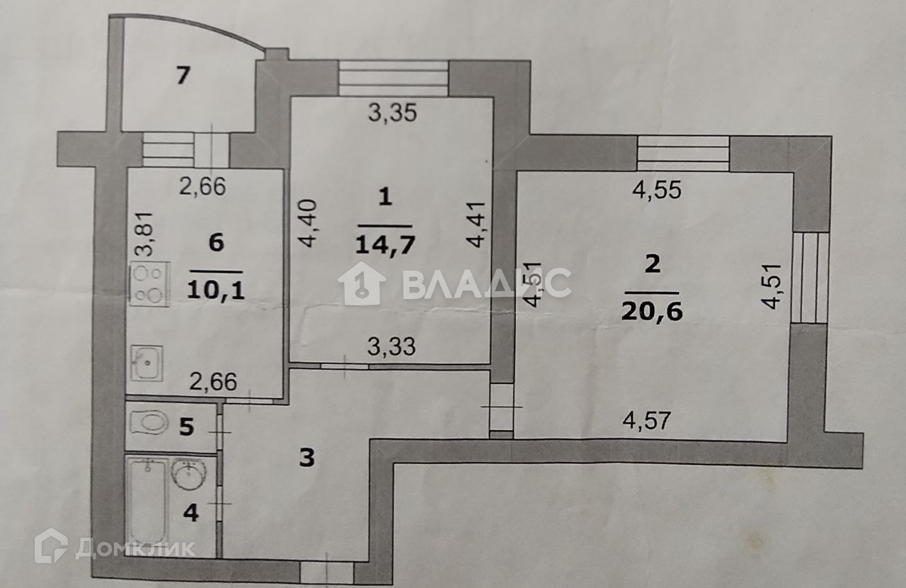 Жилая площадь 35.3 м2