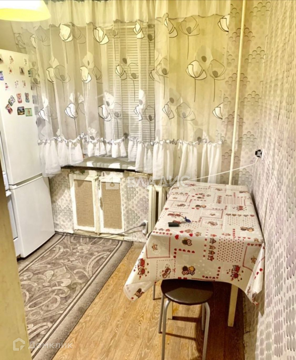 На полу линолеум, стены оклеены обоями, за счёт труб в квартире создаётся эффект тёплого пола