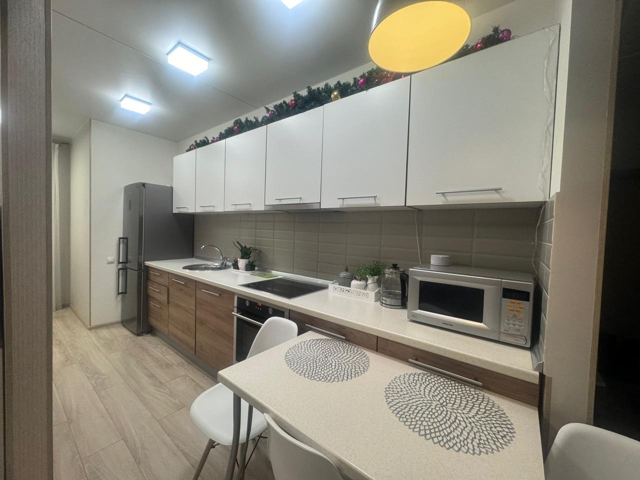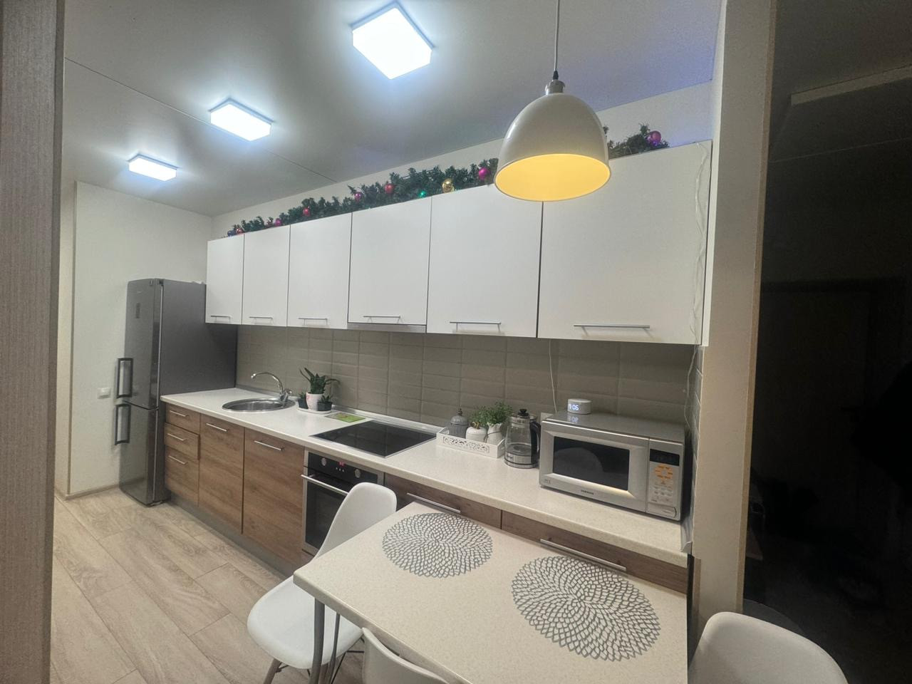 Качественный ремонт, остаётся новым хозяевам вся мебель, из техники остается кондиционер, варочная панель, духовой шкаф, вытяжка. имеется счетчик на отопление , система теплый пол.Удобное расположение дома! Двор без проезда, рядом много парковочного пространства(в отличие других домов), шикарное благоустройство, маршруток очень много, ходят через каждые 20 минут (до жд, аэропорта, через Сити Молл до Спутника).