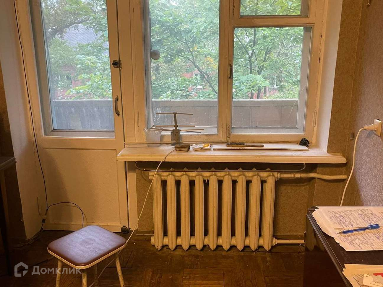 Напольное покрытие в комнатах-паркет(в хорошем состоянии,не скрипит).