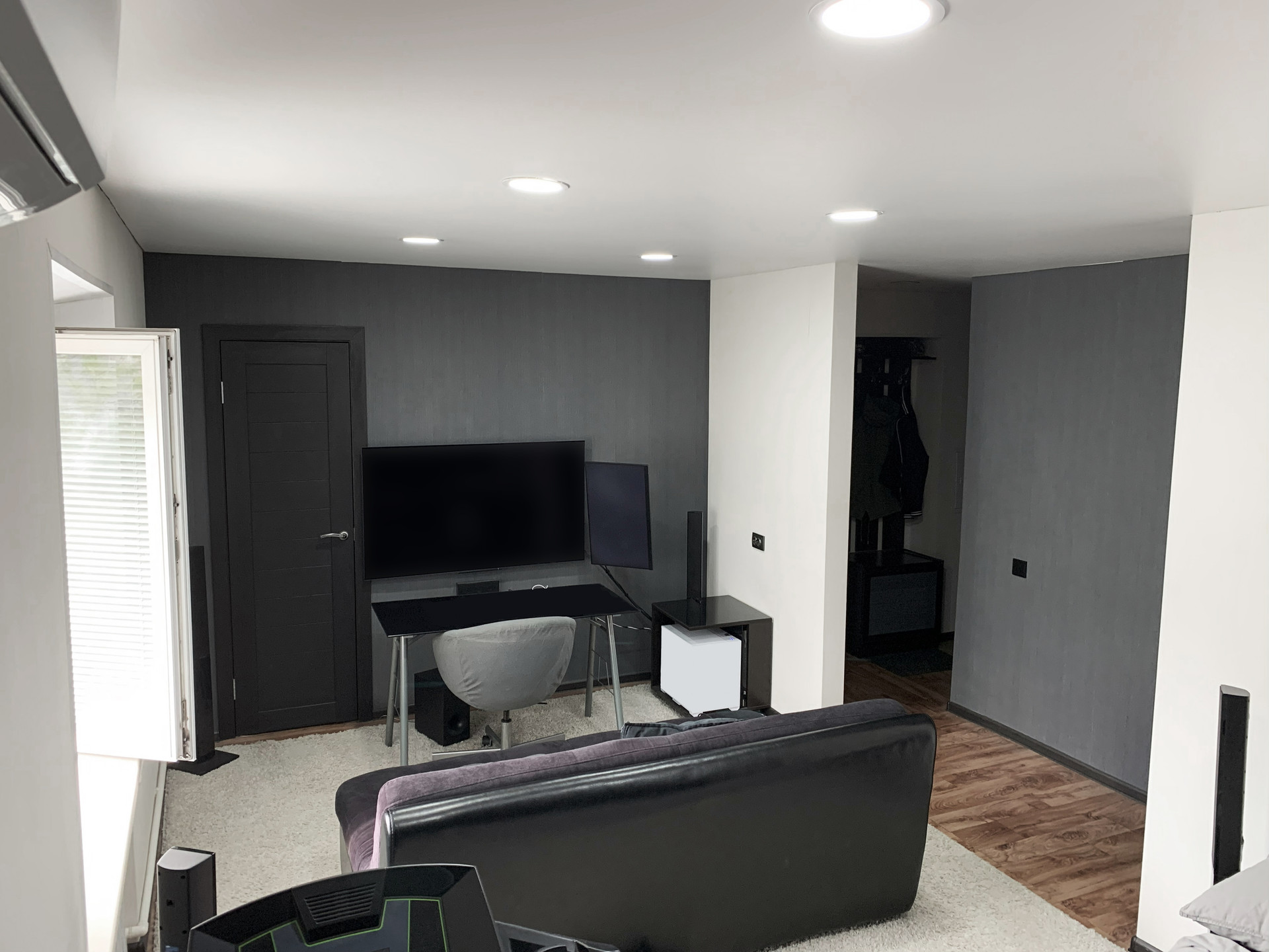 • Натяжной потолок со встроенным led освещением по всей квартире