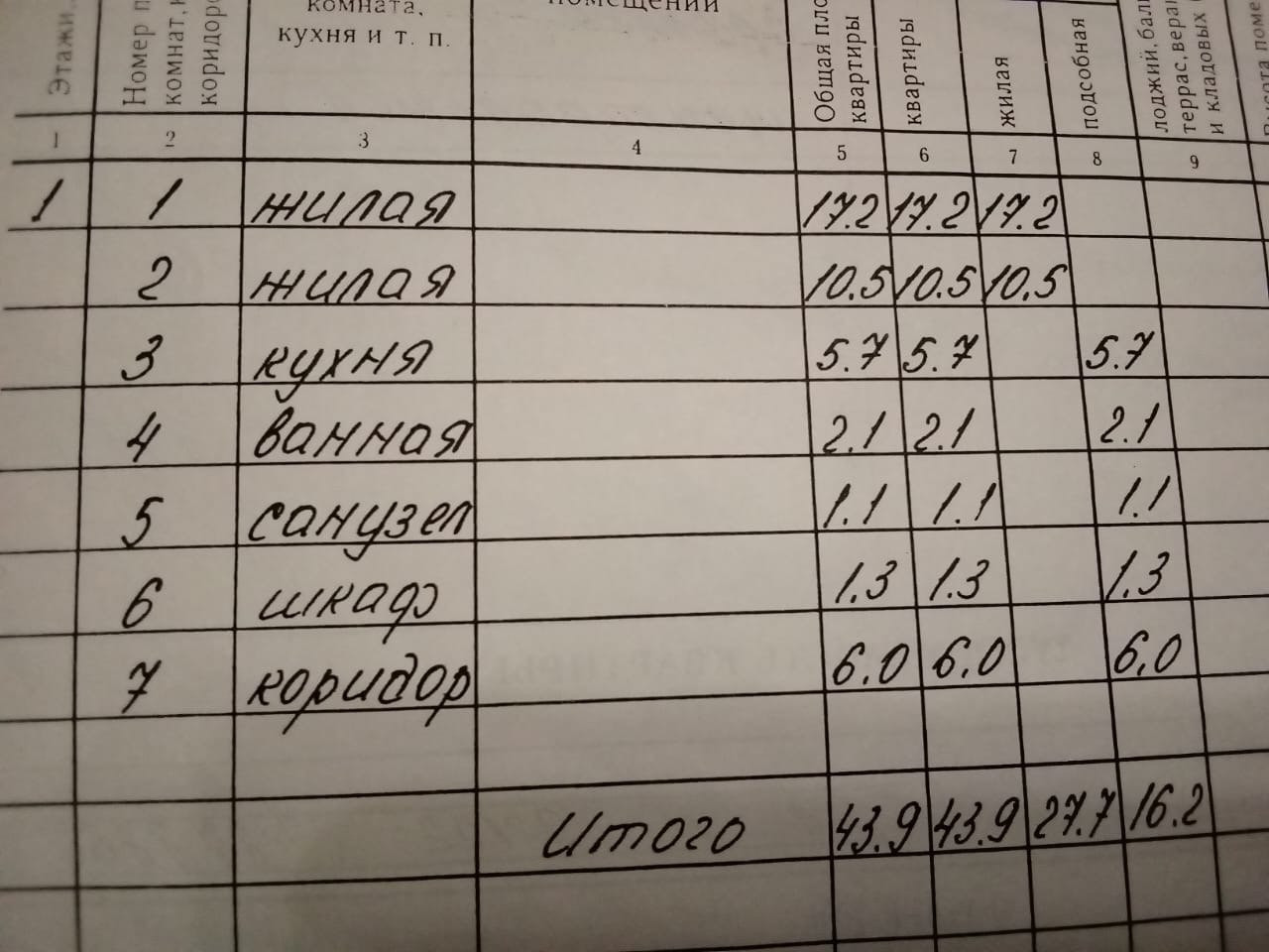 Общая площадь 43.9 м2