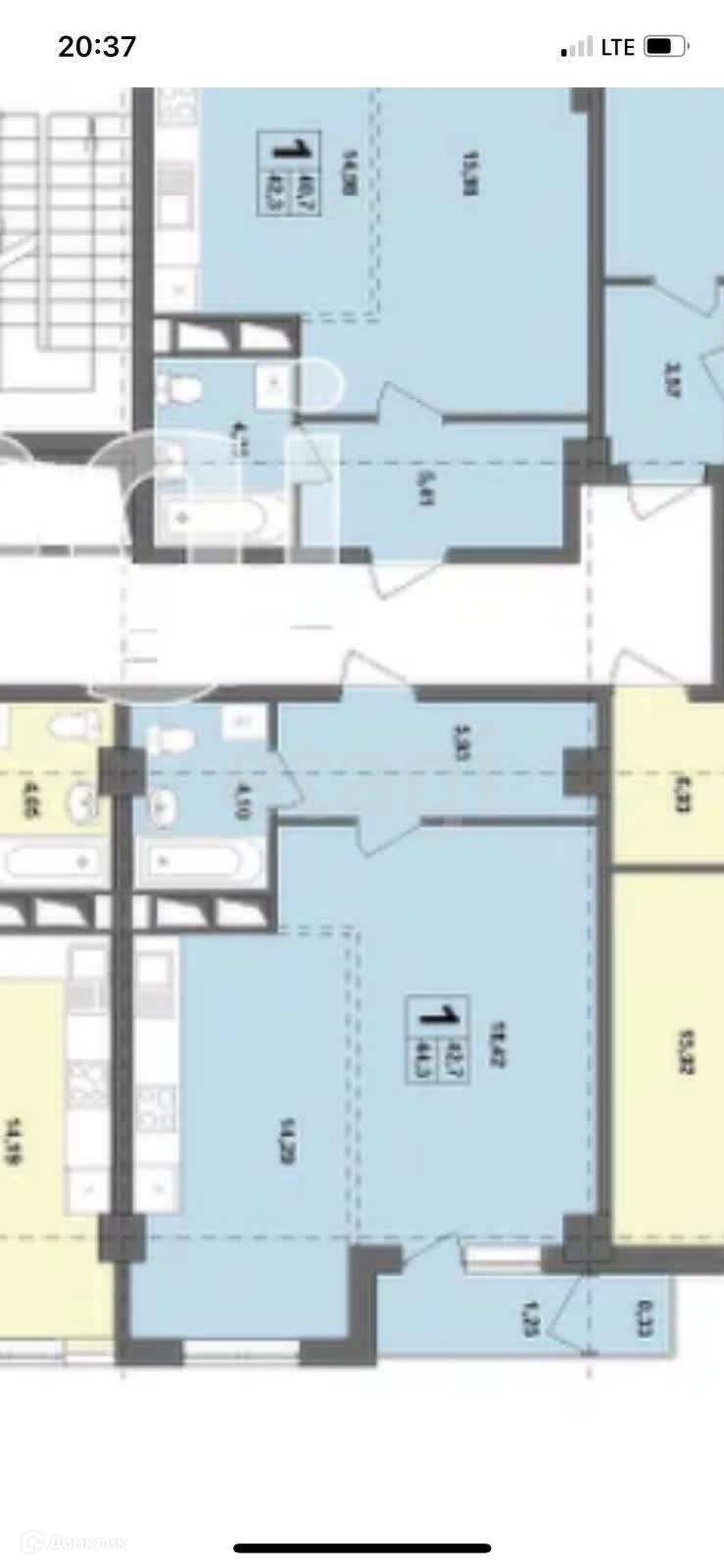 1-комнатная квартира, 43.4 м2, этаж 8 / 20, на продажу в Белгороде, улица Есенина, 15